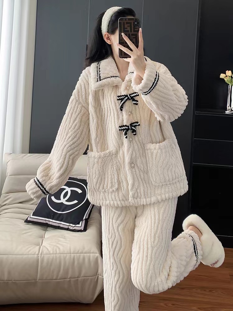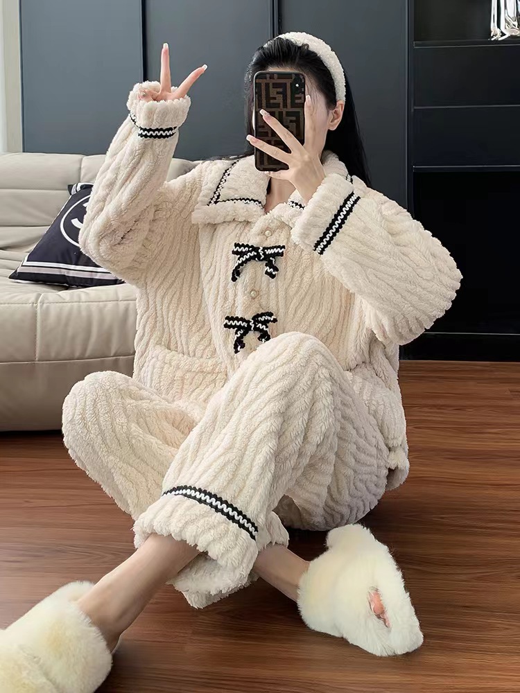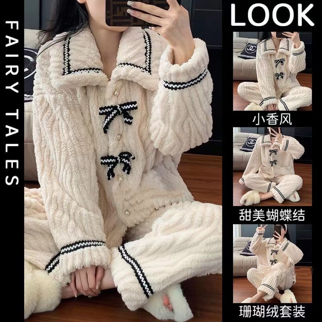 잠옷 여성의 가을과 겨울 새로운 플란넬 홈 옷 산호 양털 두꺼운 기모 달콤한 공주 스타일 따뜻한 옷 세트스토어 가기