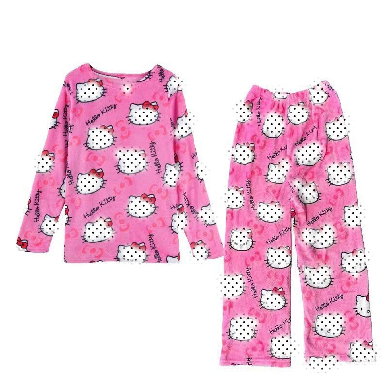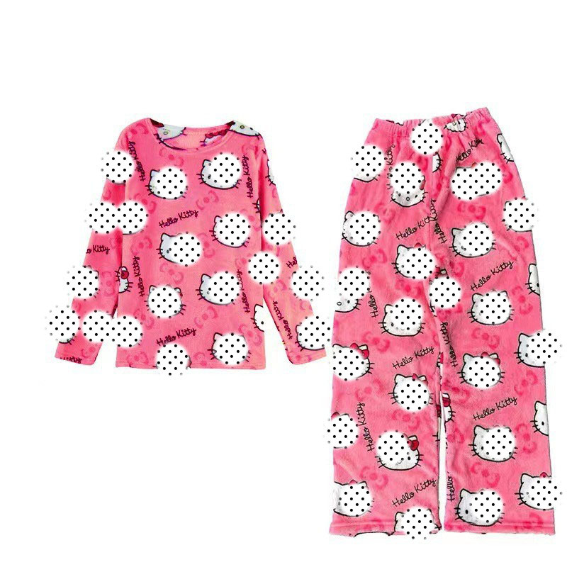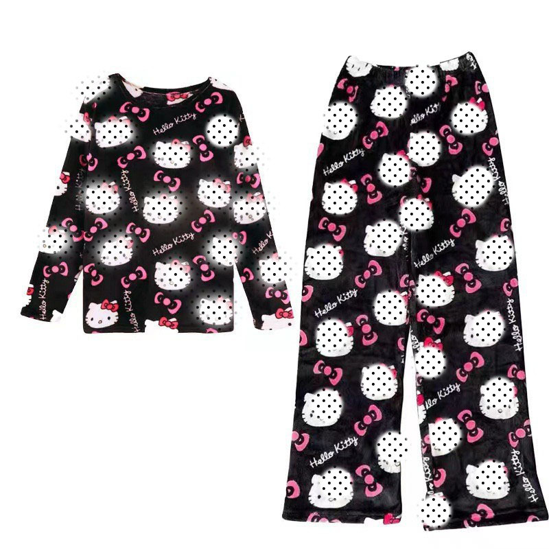 여성용 가을 겨울 신상 투피스 플란넬 잠옷 바지 플러스 벨벳 보온 캐주얼 홈웨어 세트 바지 다용도스토어 가기