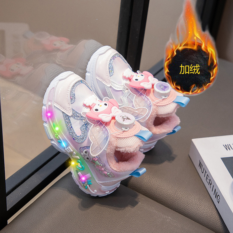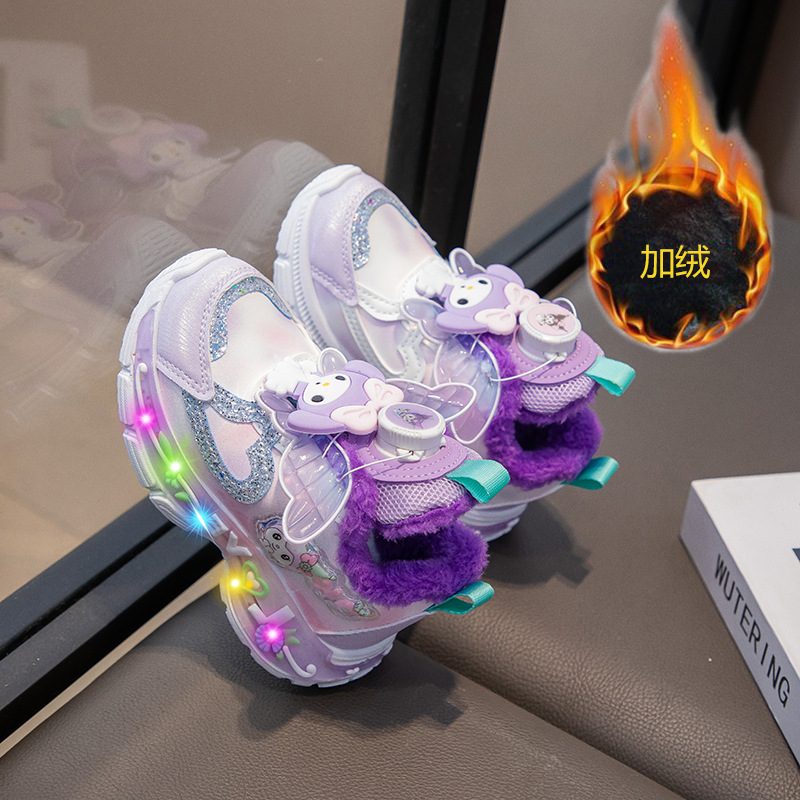 2025 가을, 겨울 새로운 빛나는 회전 버튼 스포츠 신발 소녀와 어린이 공주 신발 가죽 방수 빛