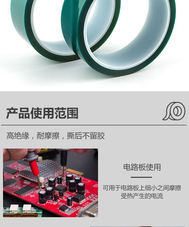 PET 녹색 고온 저항 테이프 전기 도금 베이킹 페인트 고온 마스킹 필름 PET 테이프 절연 높은 점도 잔류 물 없음