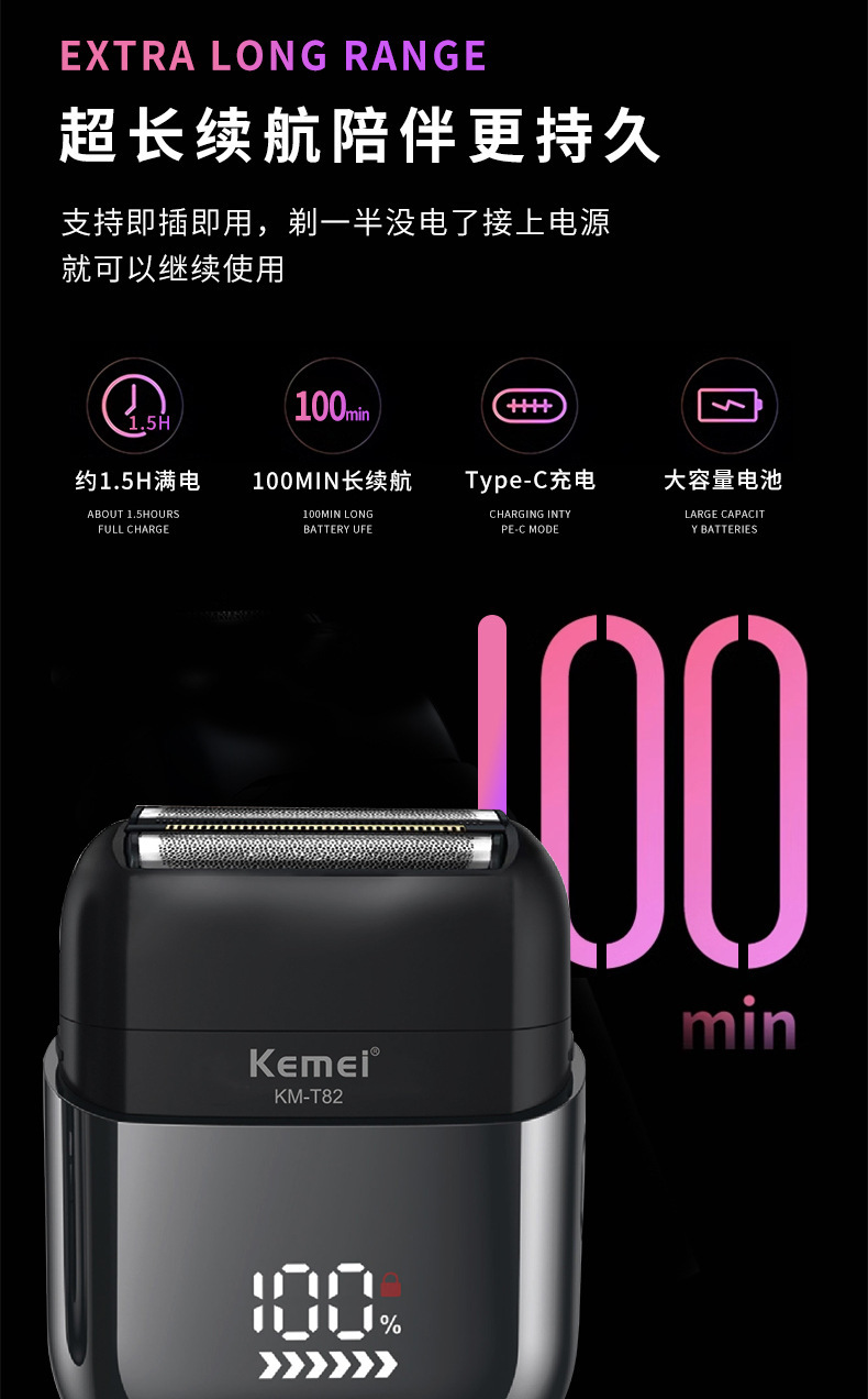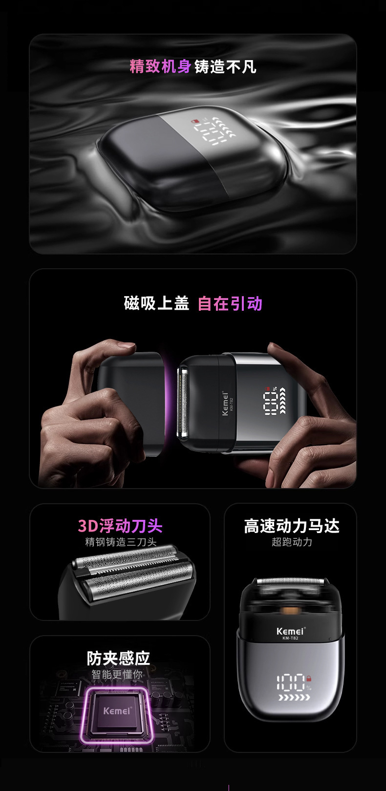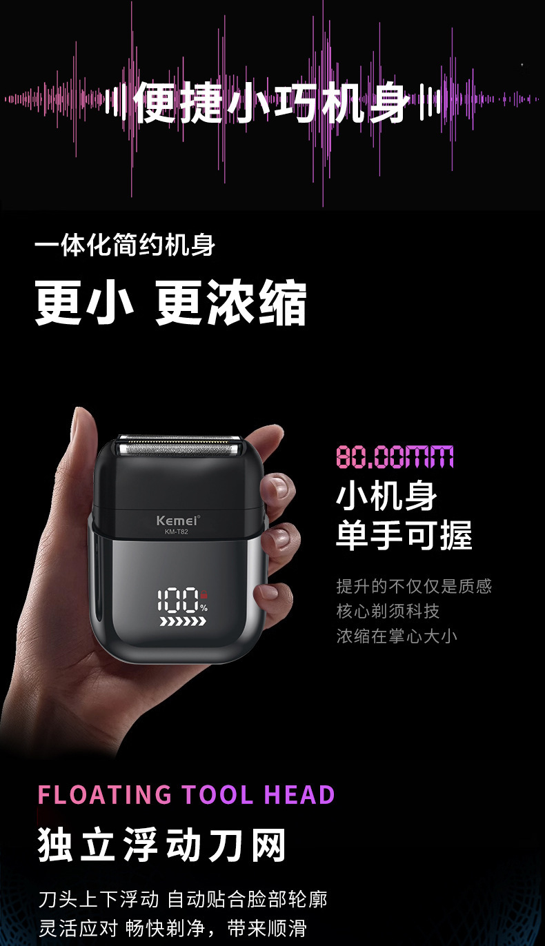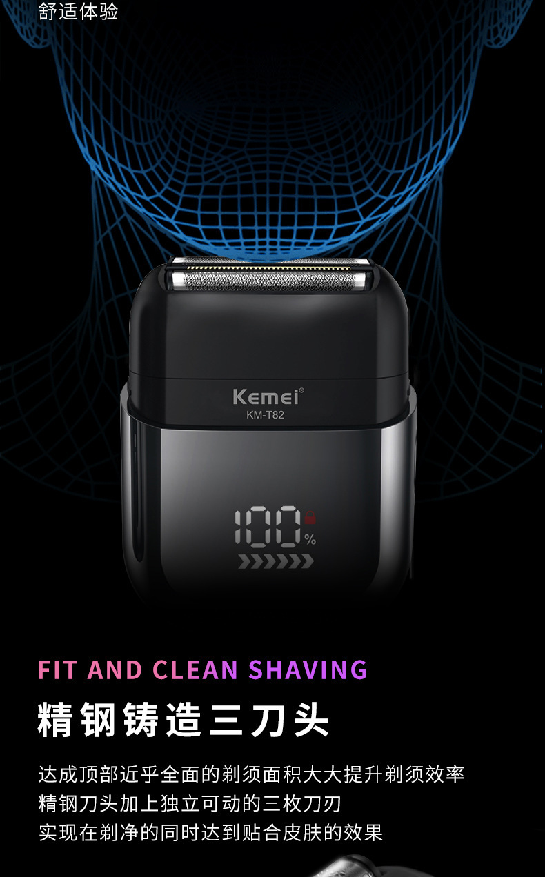 Kemei KM-T82 새로운 면도기 미니 고출력 휴대용 세척 가능 남성용 전기 면도기 1개 배치스토어 가기