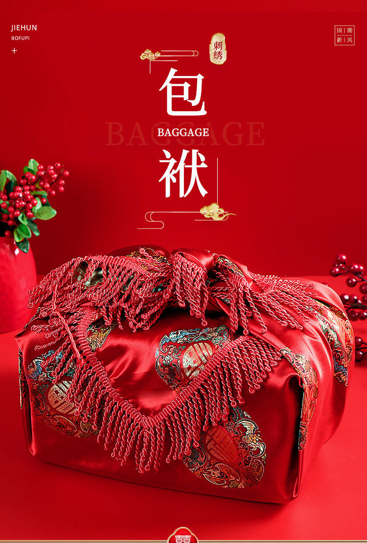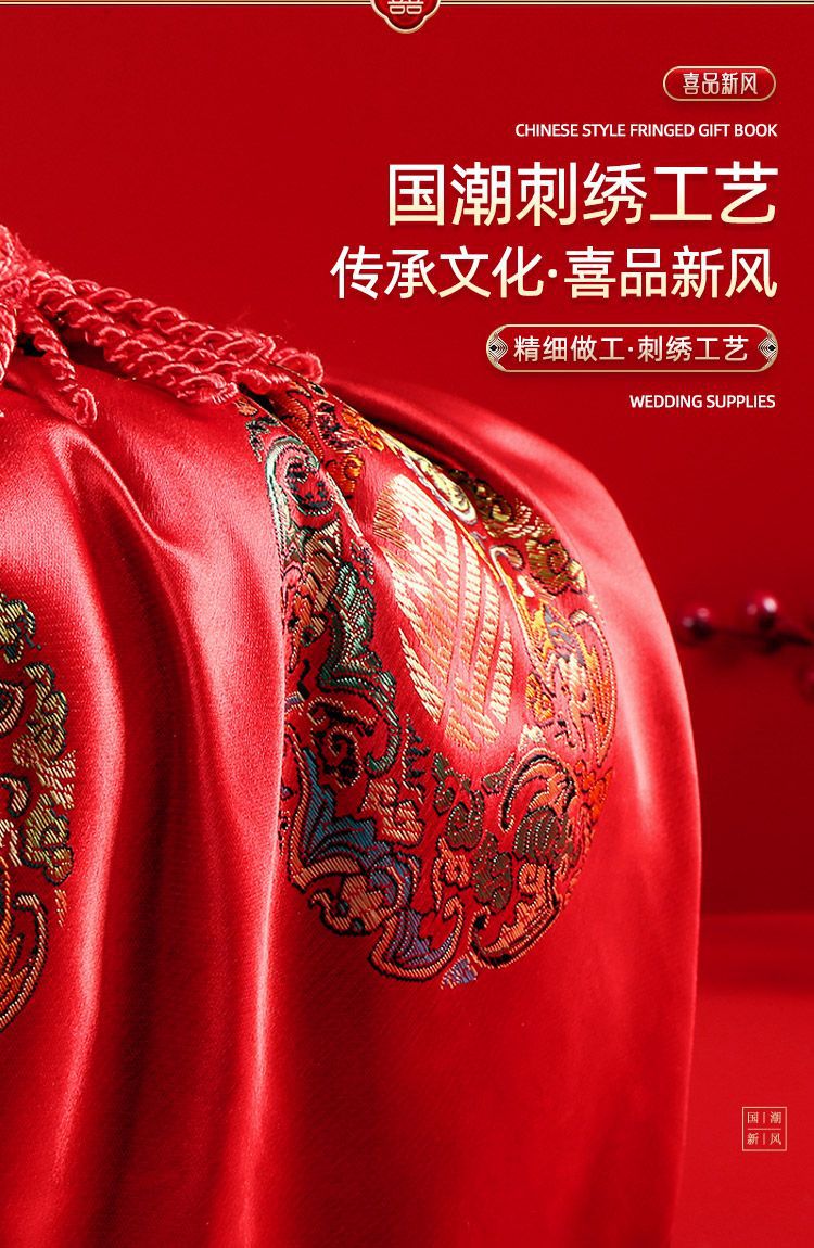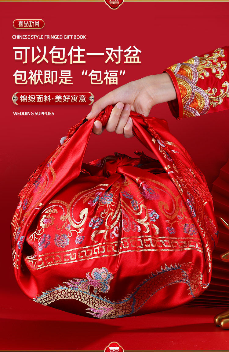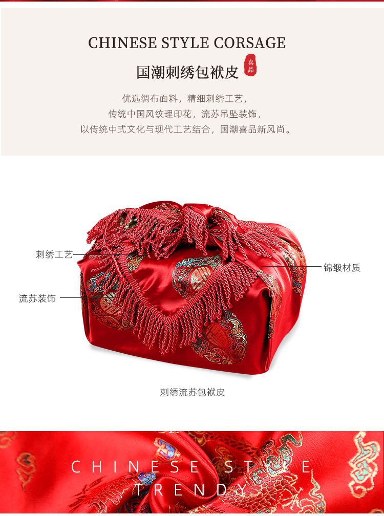 Wauki 임금 처녀 Dowry 신부 Dowry 기사 웨딩 용품 레드 랩 헝겊 해피 가방 여자