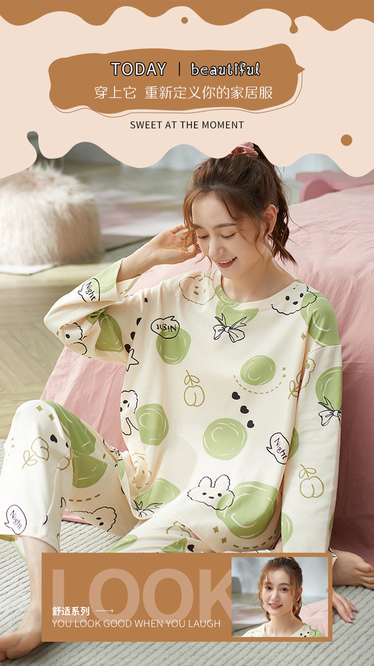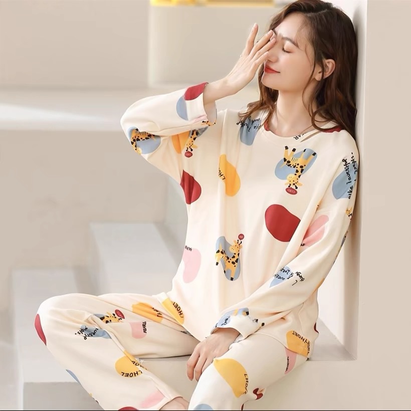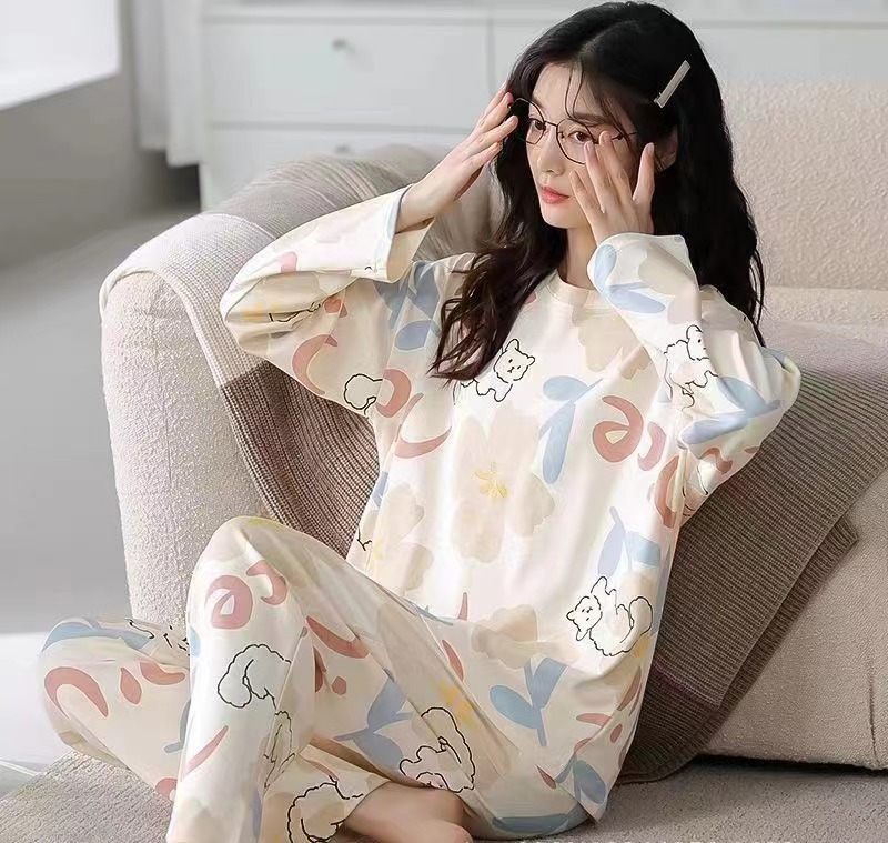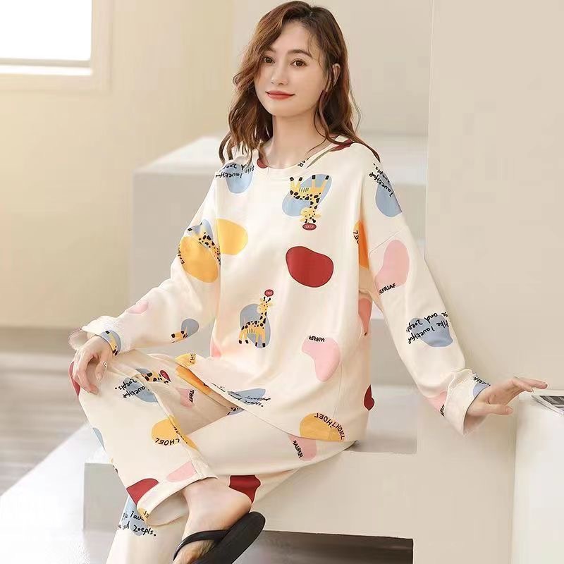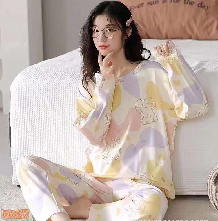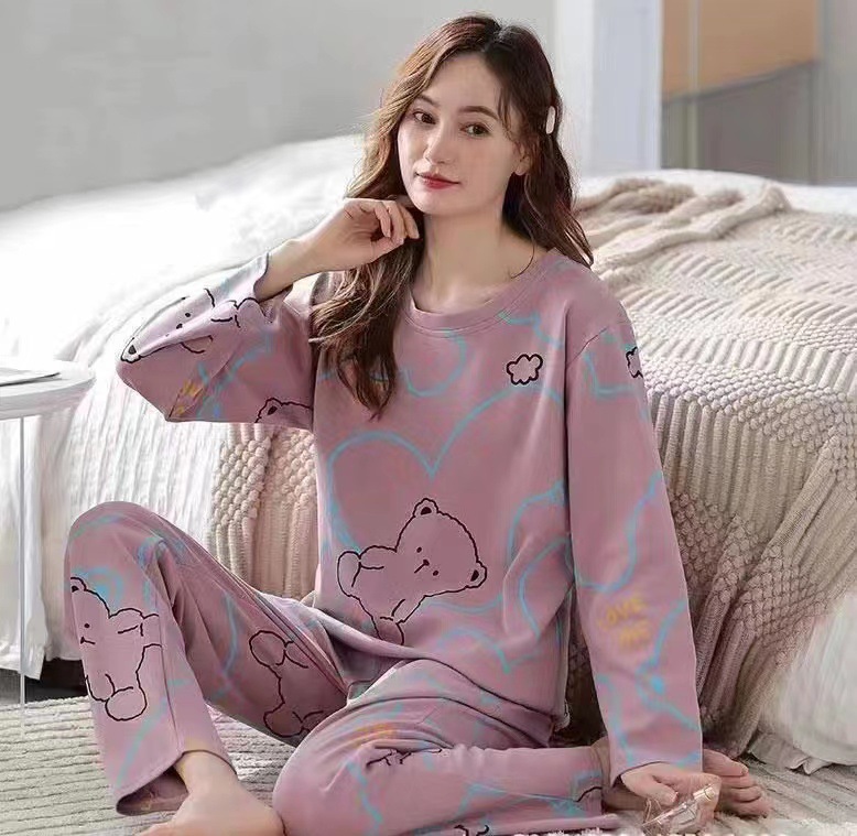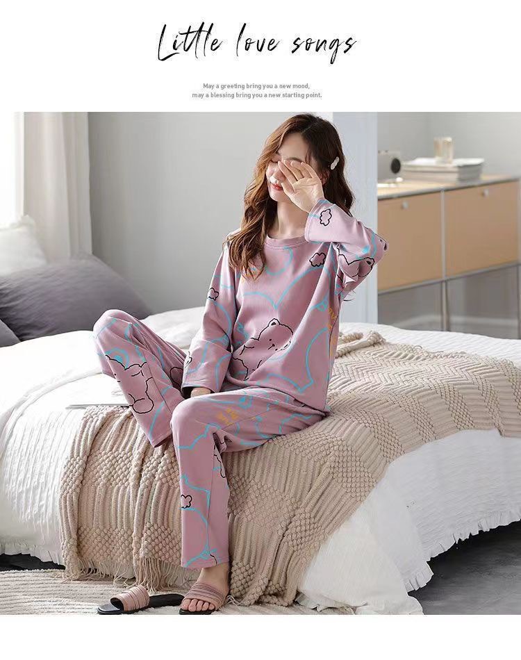 잠옷 여성의 새 만화 한국식 Ins 긴팔 바지 느슨한 캐주얼 플러스 사이즈 가을과 겨울 국경 동남아스토어 가기