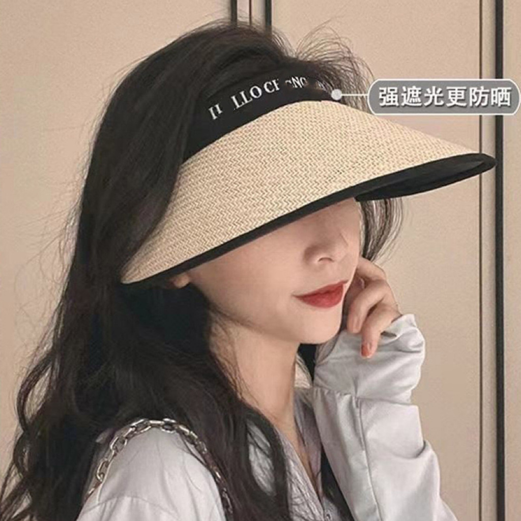 Straw vacant Top Sunscreen Sun Hat 여성의 인터넷 인기있는 새로운 여름 여행 널리 큰 Eave 머리띠 오리 혀 태양 모자스토어 가기