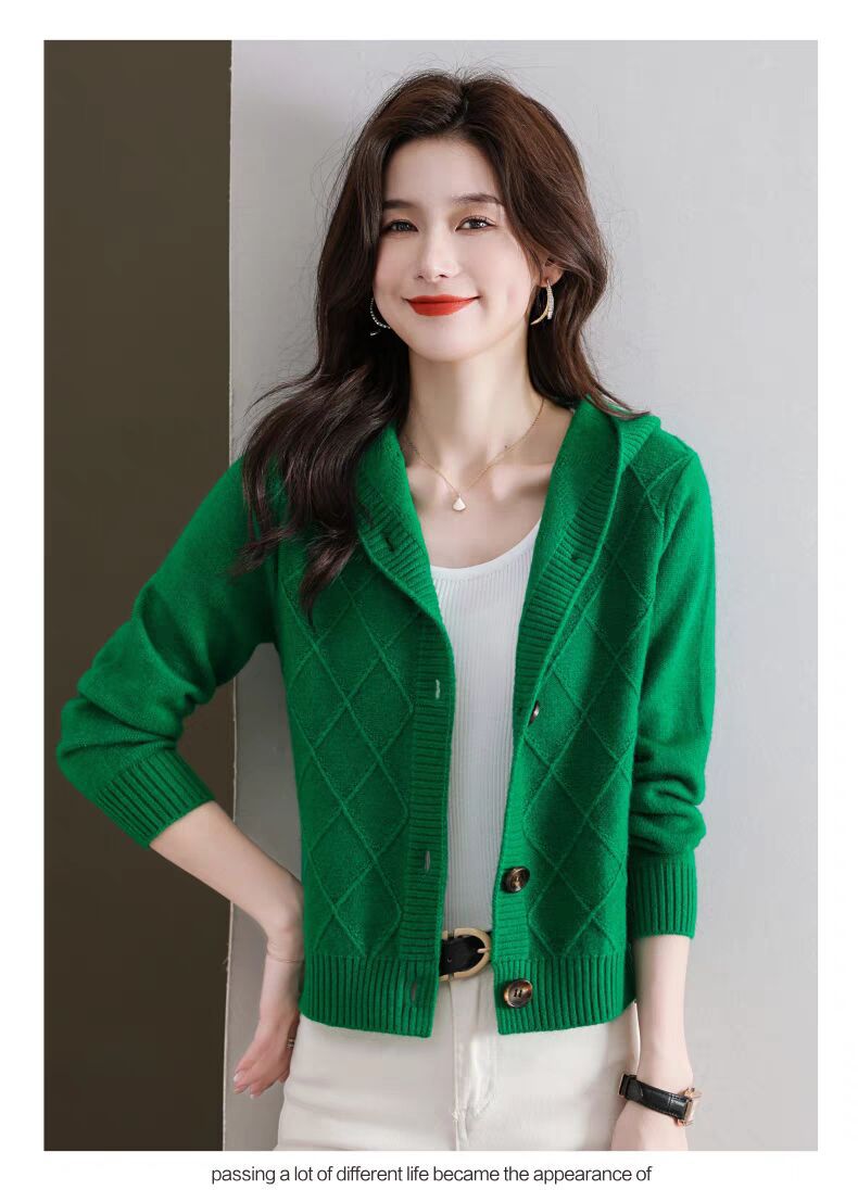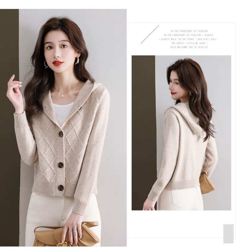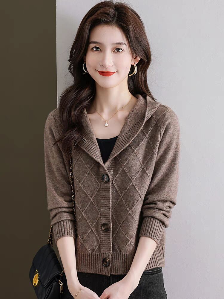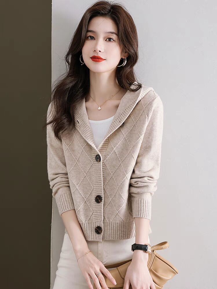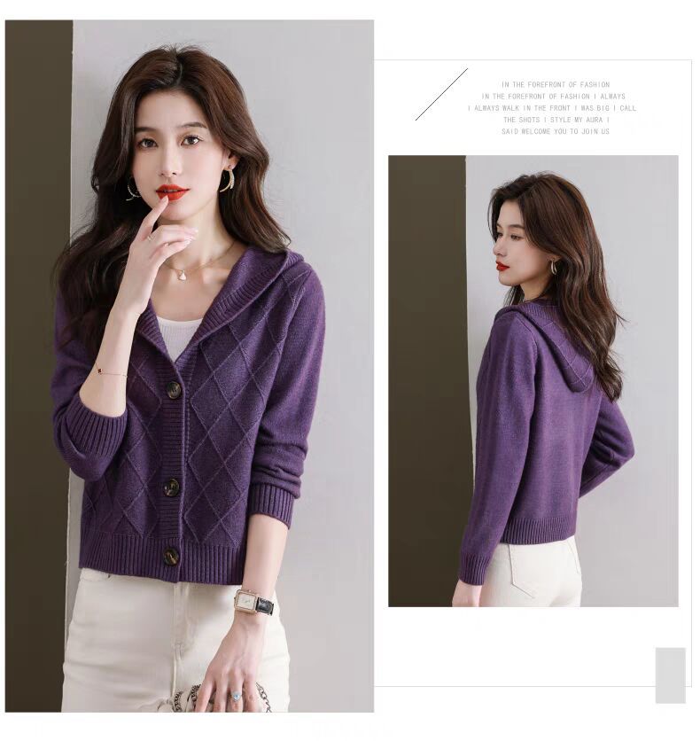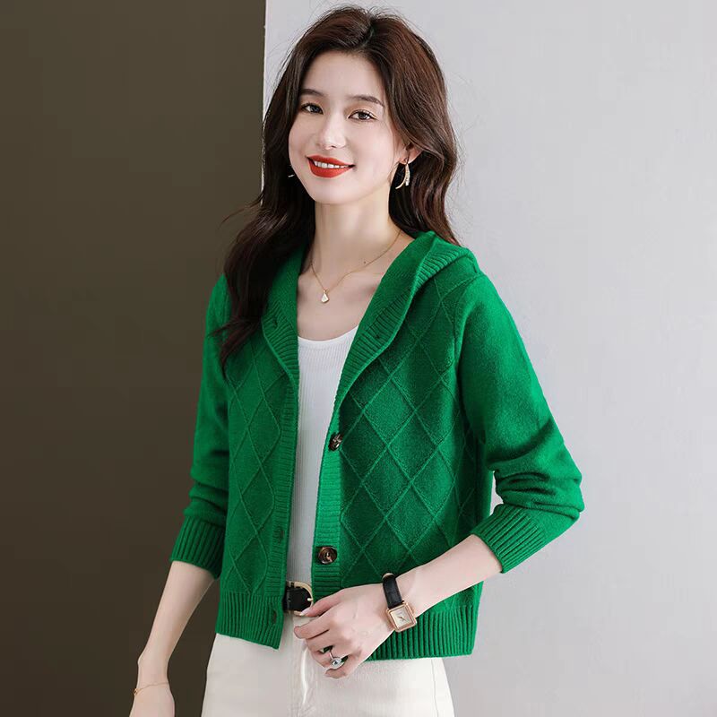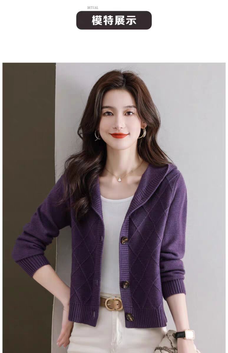 후드 니트 카디건 여성의 가을 2024 새로운 느슨한 캐주얼 아우터 후드 작은 코트스토어 가기