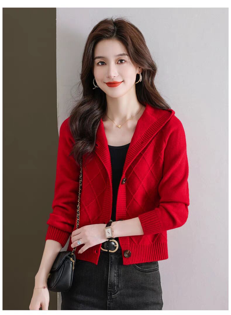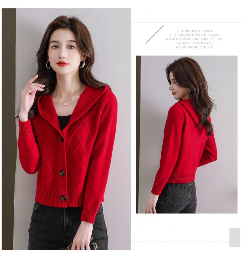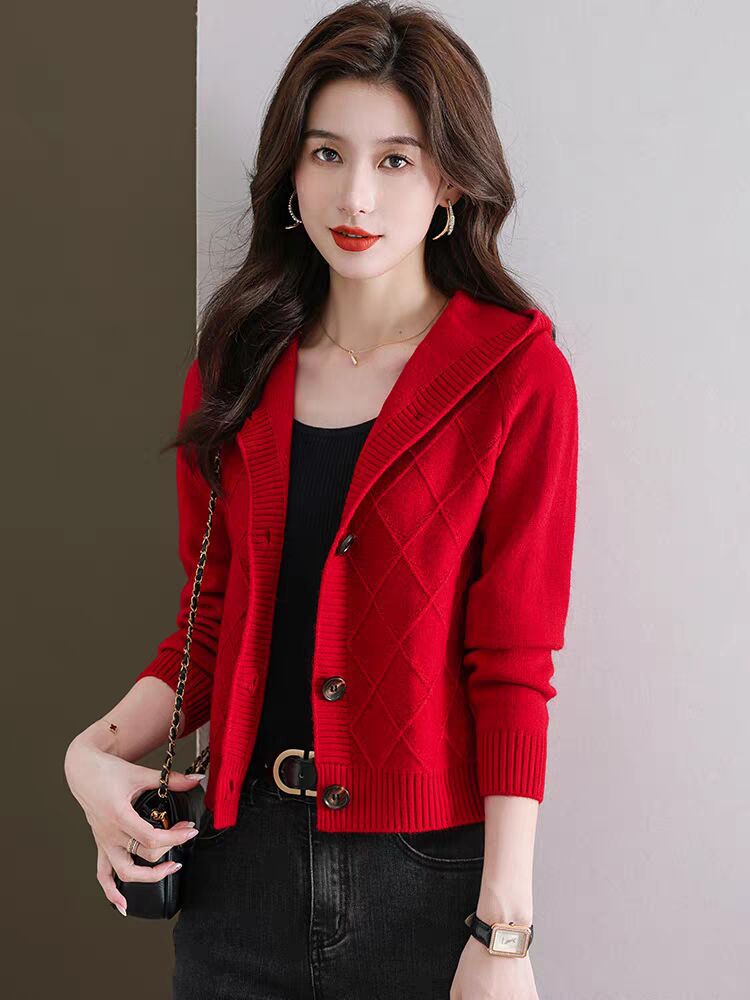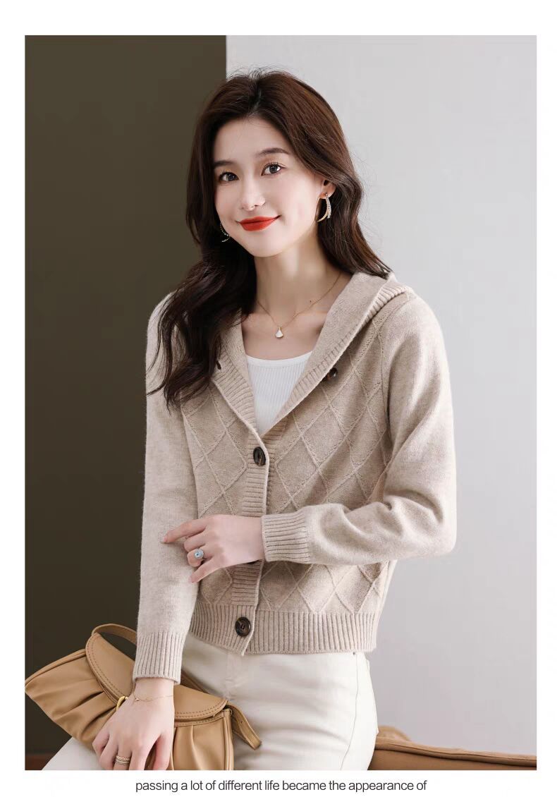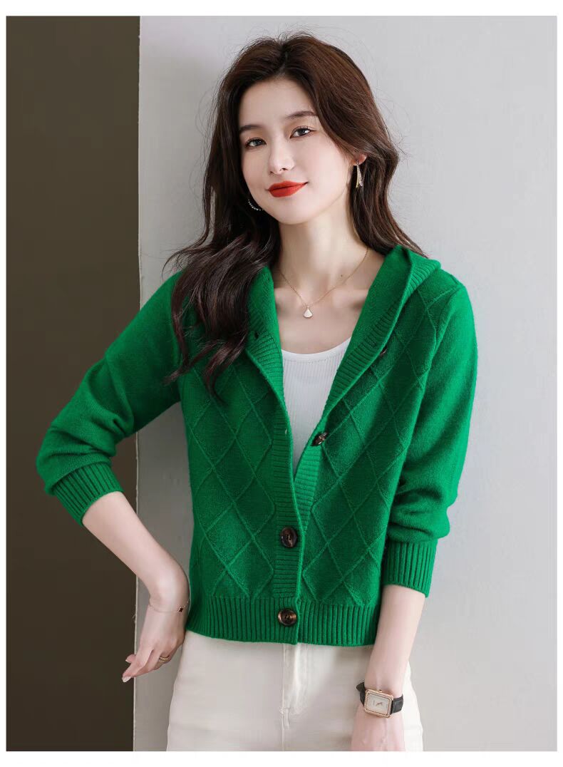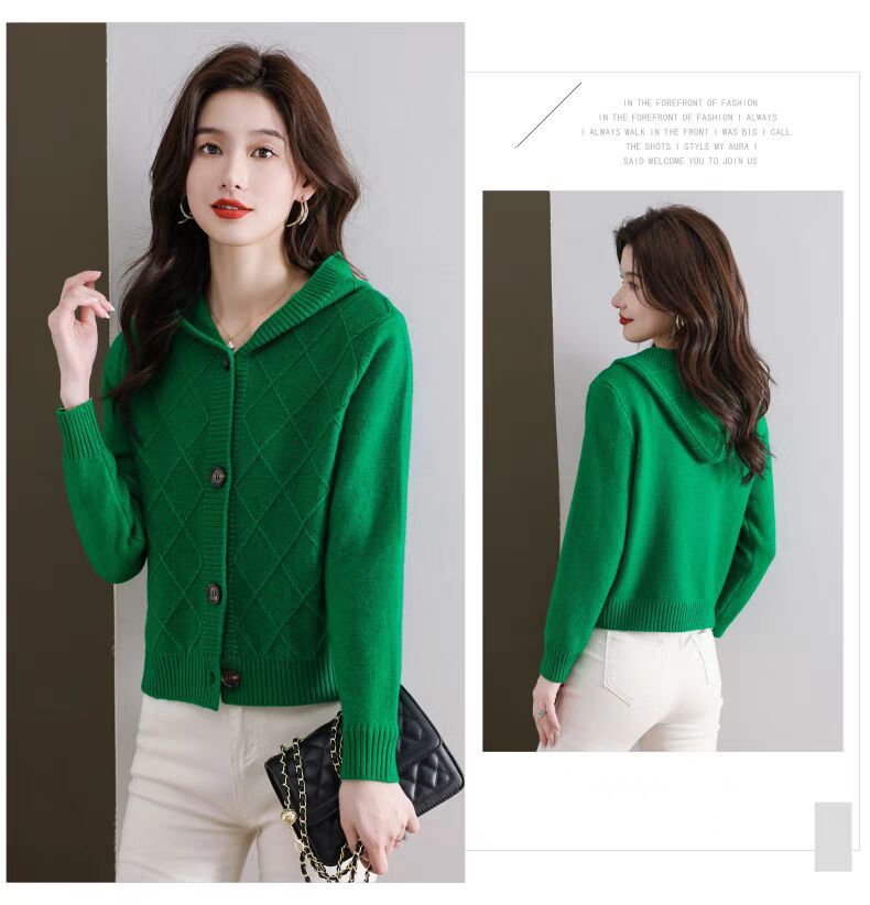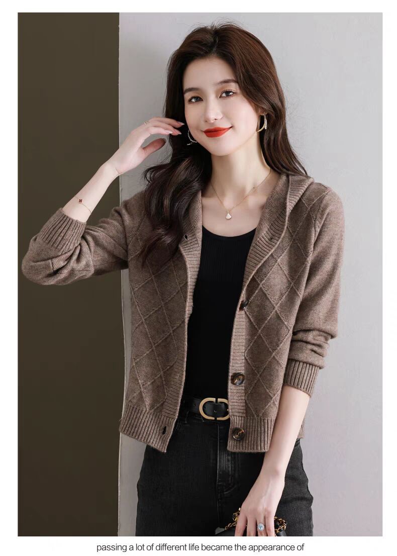 후드 니트 카디건 여성의 가을 2024 새로운 느슨한 캐주얼 아우터 후드 작은 코트스토어 가기
