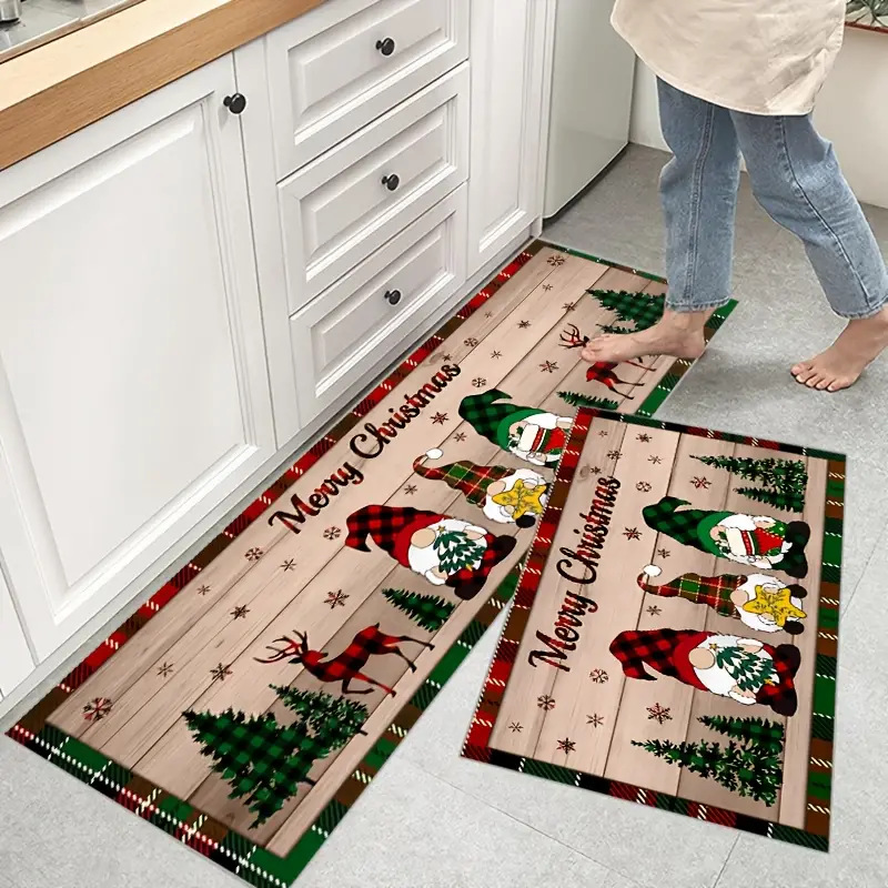 국경 간 진저 브레드 맨 산타 클로스 그린 만화 스타일 플로어 매트 미끄럼 방지 주방 긴 카펫 바닥 매트스토어 가기