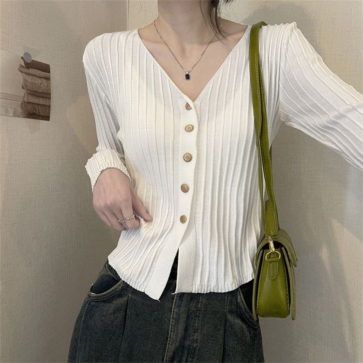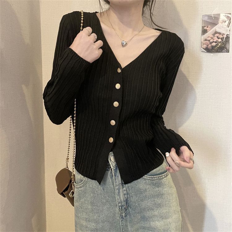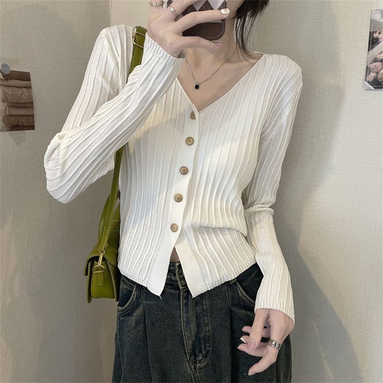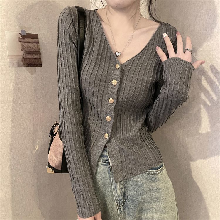 게으른 스타일의 편안한 회색 스웨터 가을 2024 새로운 카디건 싱글 로우 코트 긴 소매 얇은 짧은 탑스토어 가기