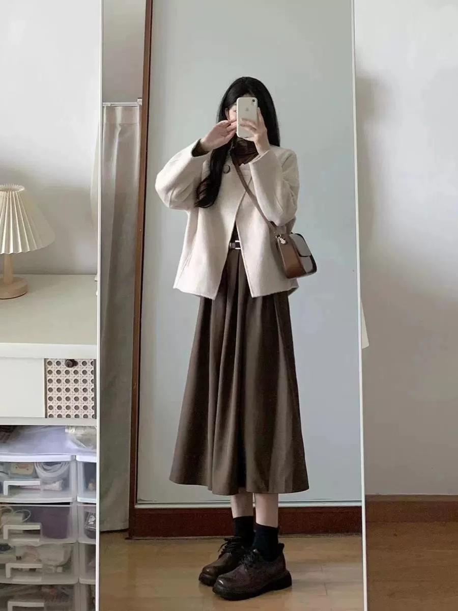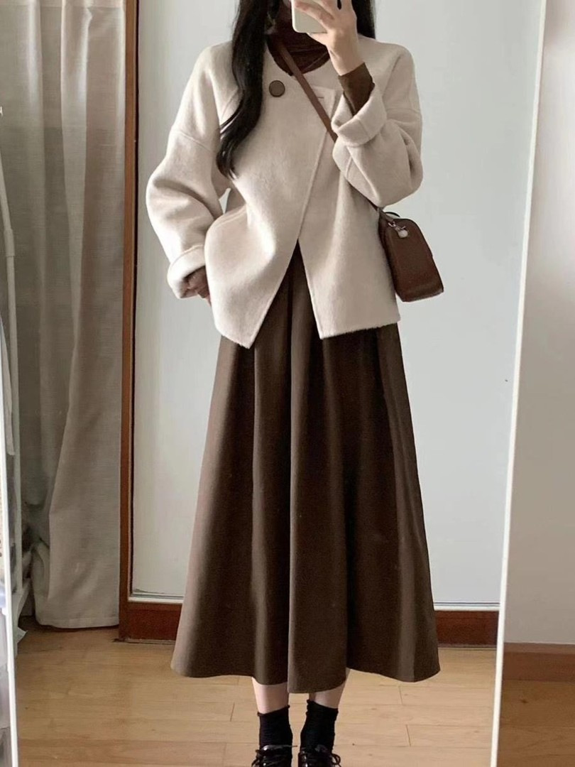 가을 겨울 시즌 여성용 고급스러운 니트 재킷과 살짝 통통한 여성을 위한 슬림핏 원피스 세트스토어 가기