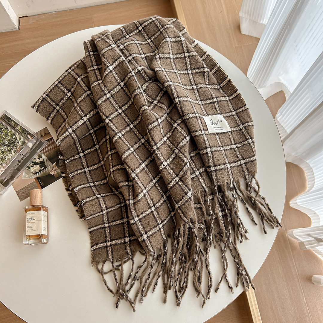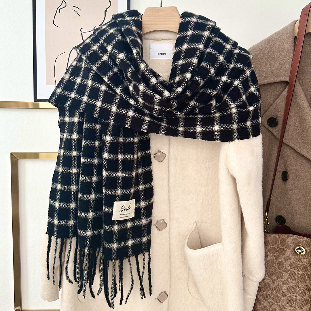 하이 엔드 Sense Plaid Tassel 간단한 스카프 여자 겨울 올매치 따뜻한 격자 목도리 일본-한국 패션 모방 캐시미어 스카프스토어 가기