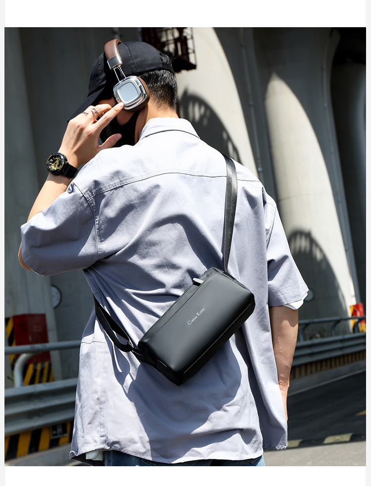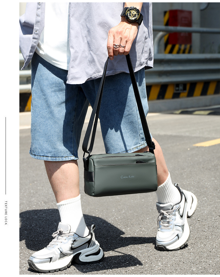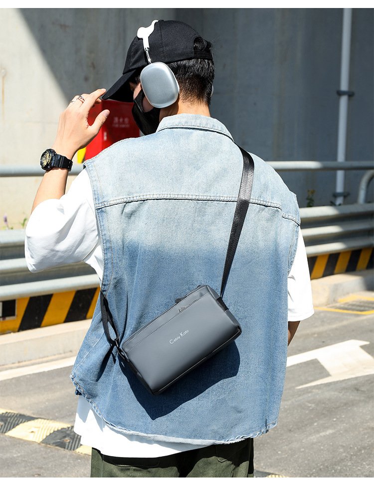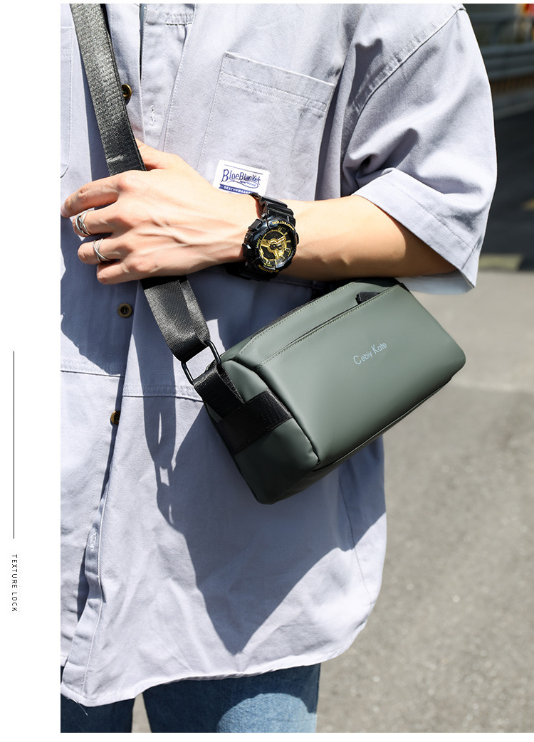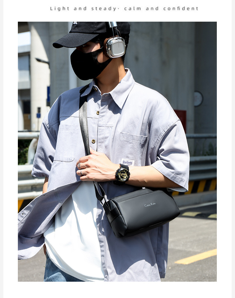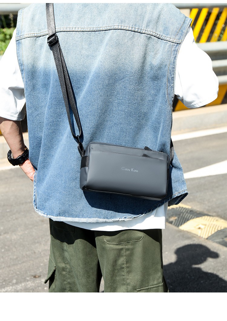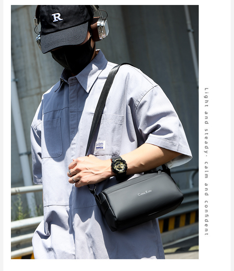 남자 가방 가죽 필름 천 어깨 가방 2024 가을 새 거리 유행 크로스 바디 가방 수평 작은 가방 캐주얼 남성 가방