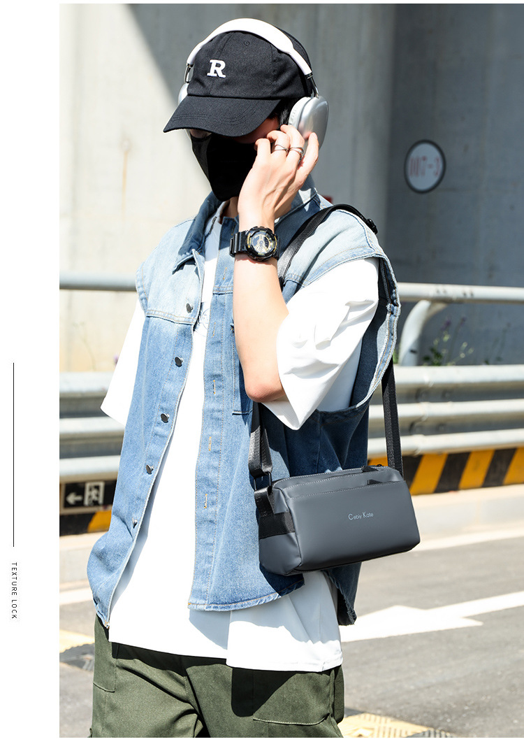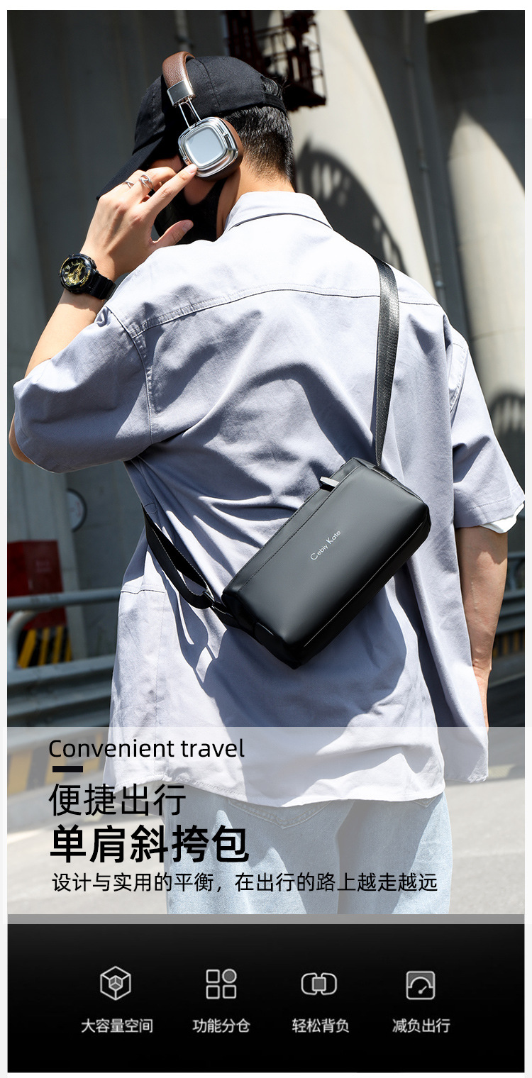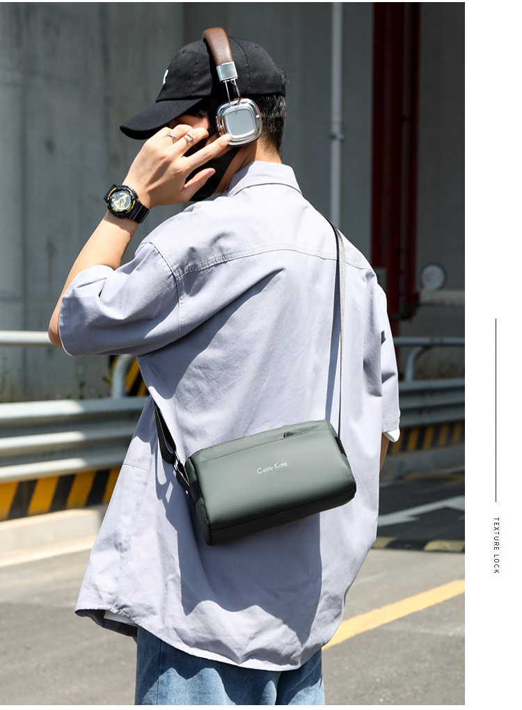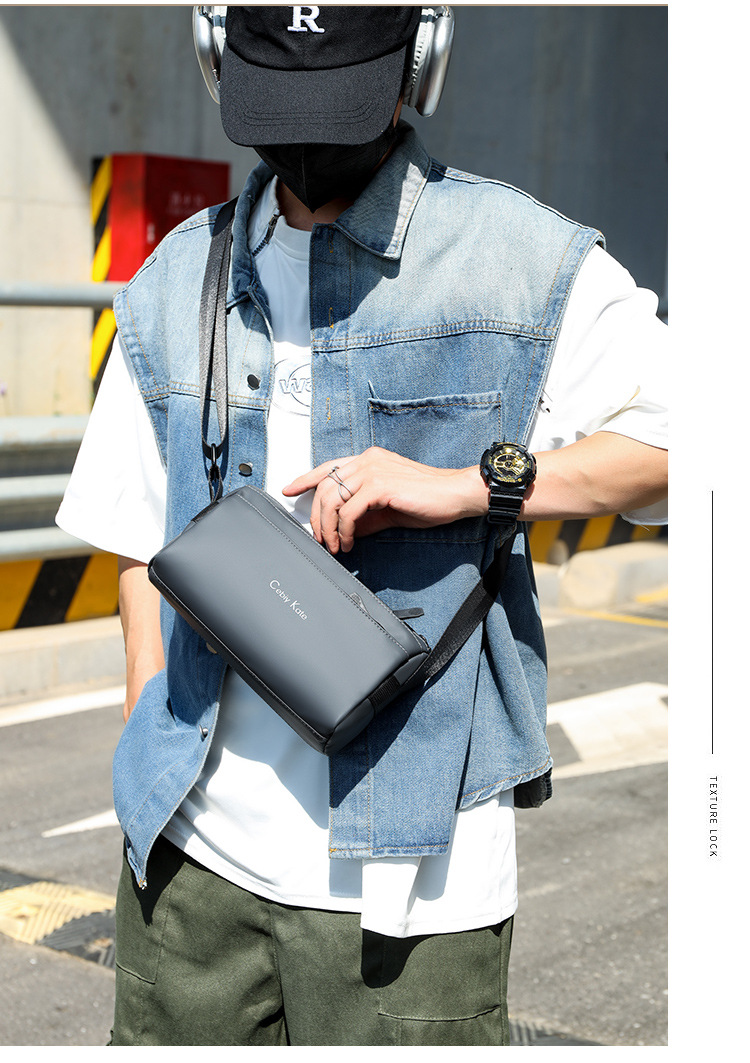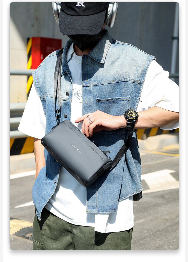 남자 가방 가죽 필름 천 어깨 가방 2024 가을 새 거리 유행 크로스 바디 가방 수평 작은 가방 캐주얼 남성 가방스토어 가기