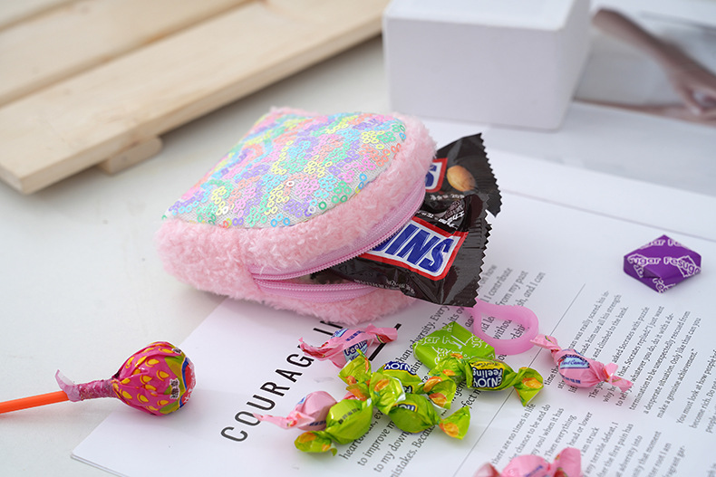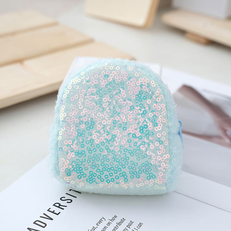 공장 도매 11cm 다채로운 레이저 헤드셋 가방 라운드 끈 간단한 스팽글 어린이 동전 지갑 가방