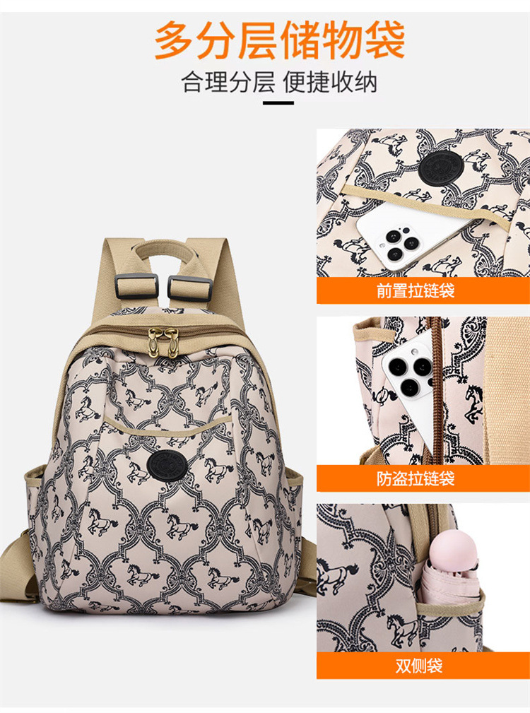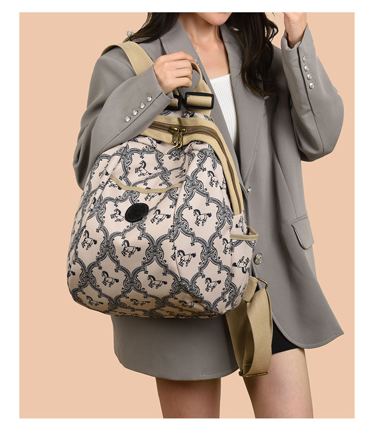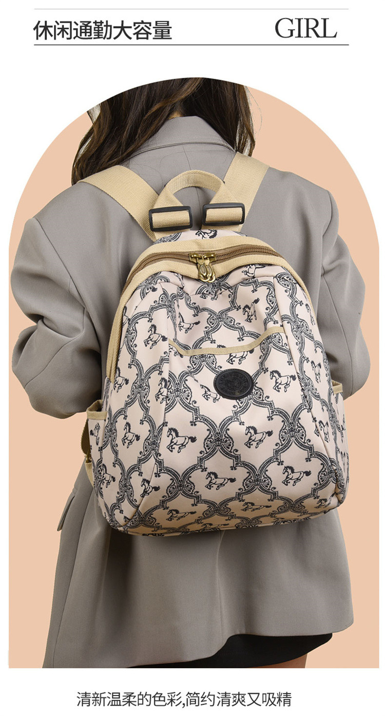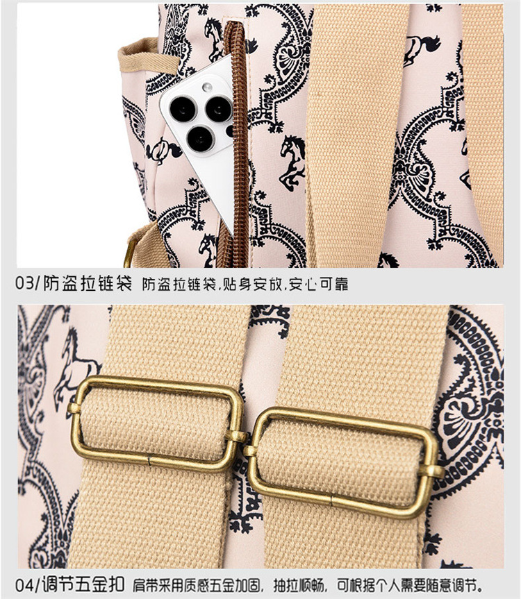 가방 여성 가방 틈새 디자인 캐리지 인쇄 통근 배낭 여성의 2024 새로운 올 매치 배낭 유행 학생 스쿨 백
