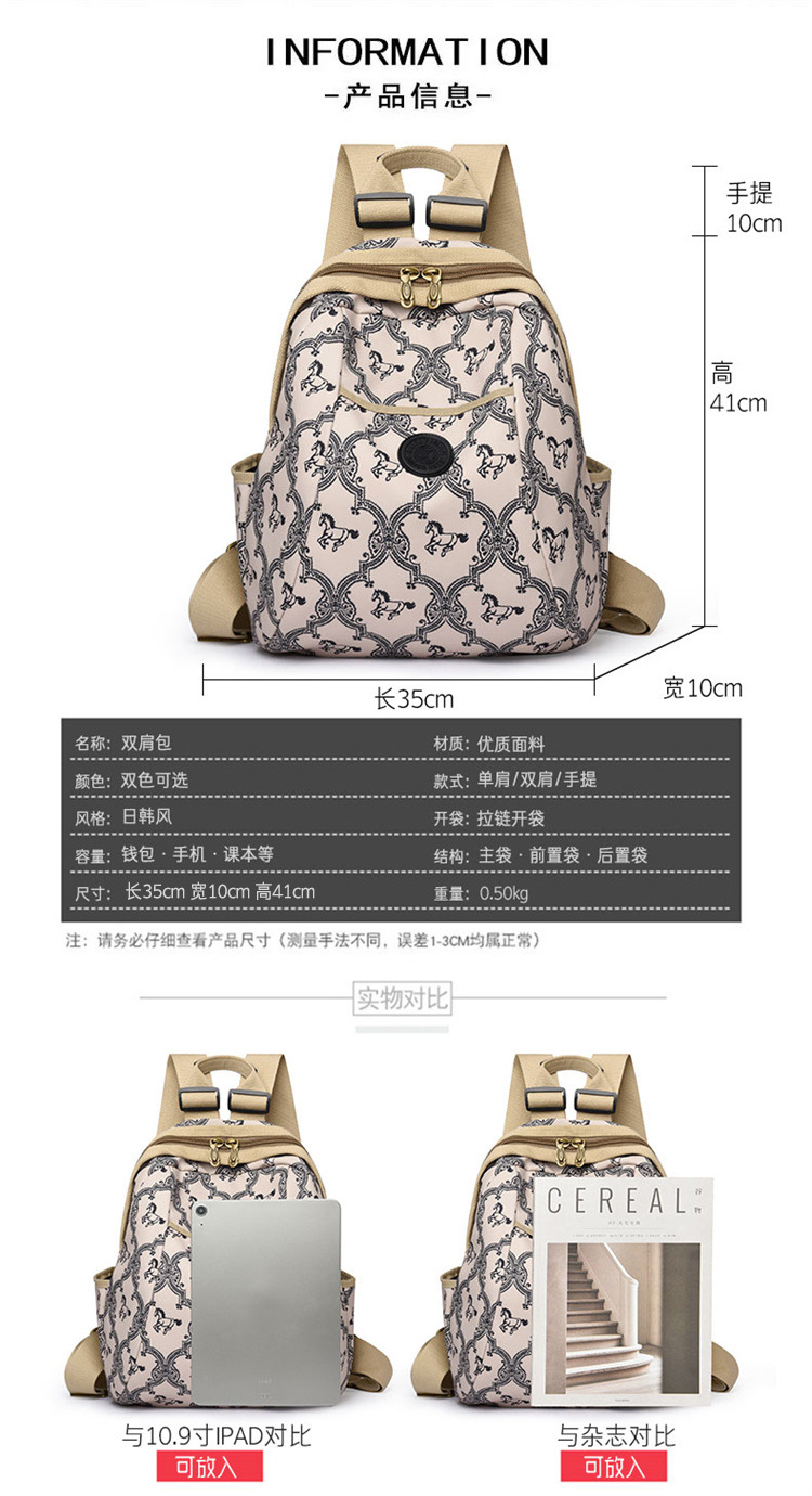 가방 여성 가방 틈새 디자인 캐리지 인쇄 통근 배낭 여성의 2024 새로운 올 매치 배낭 유행 학생 스쿨 백스토어 가기