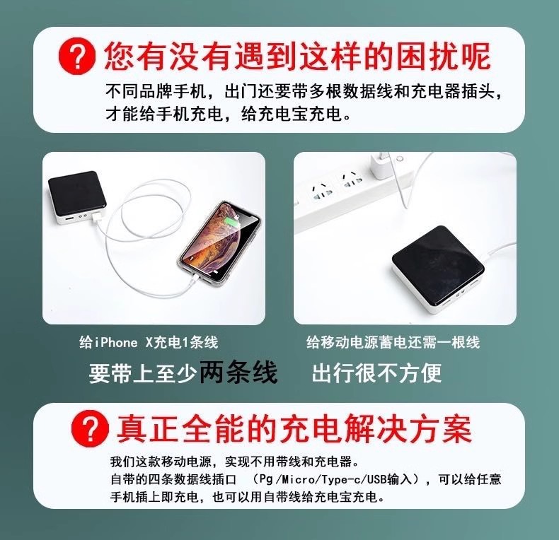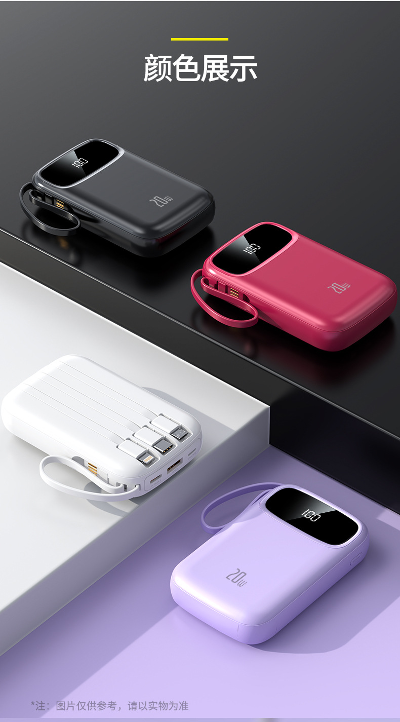3C 인증 20000mAh 용량 보조배터리 고속 충전 미니 휴대용 4선 내장 모바일 파워 뱅크 선물 인쇄 가능스토어 가기