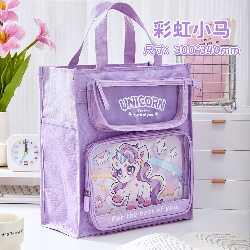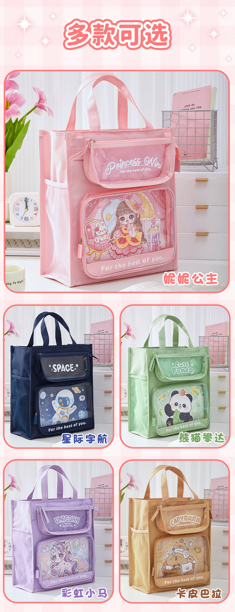 초등학생 튜토리얼 가방 대용량 분리 가능한 연필 가방 메이크업 숙제 책 가방 토트 가방 만화 캔버스 가방