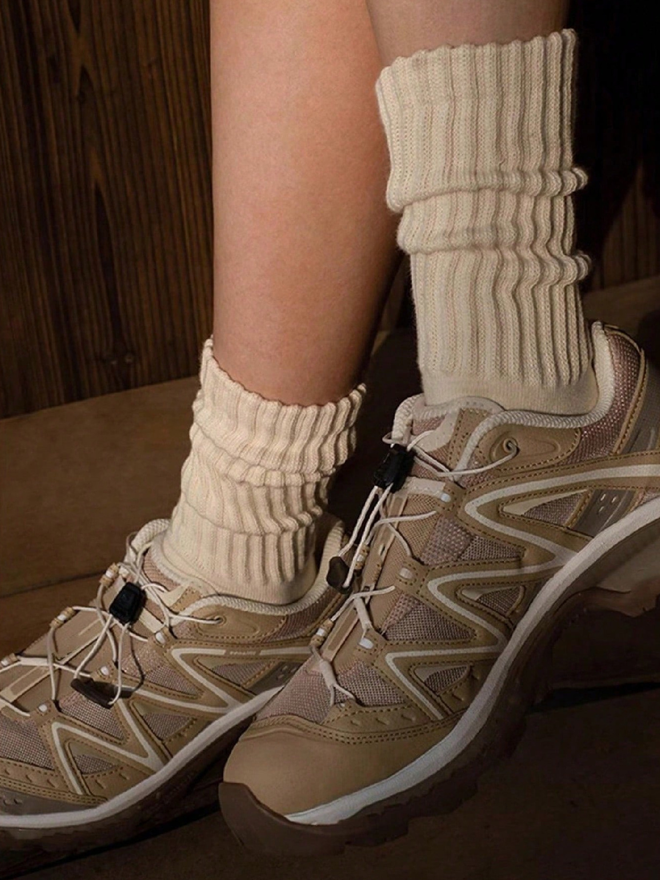 크로스보더 인기 미국 스타일 롱 양말 여성용 봄 가을 단색 두꺼운 따뜻한 종아리 양말스토어 가기