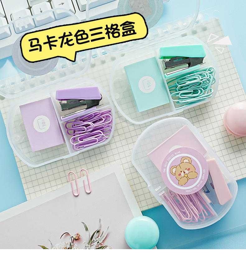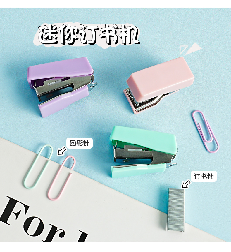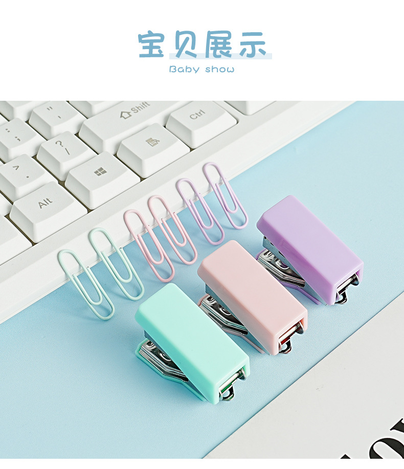 휴대용 미니 스테이플러 작은 스테이플러 공장 직접 국경 간 사무실 용품 Macaron 종이 클립 세트스토어 가기