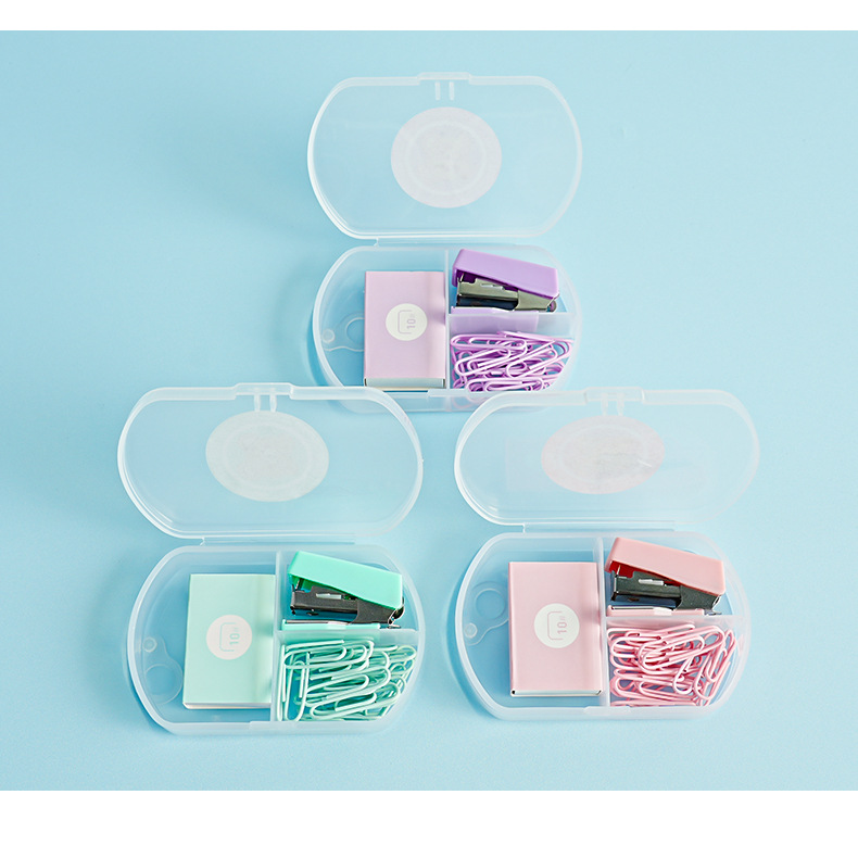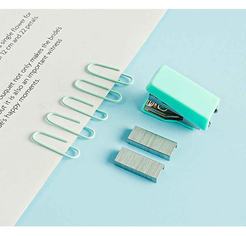휴대용 미니 스테이플러 작은 스테이플러 공장 직접 국경 간 사무실 용품 Macaron 종이 클립 세트