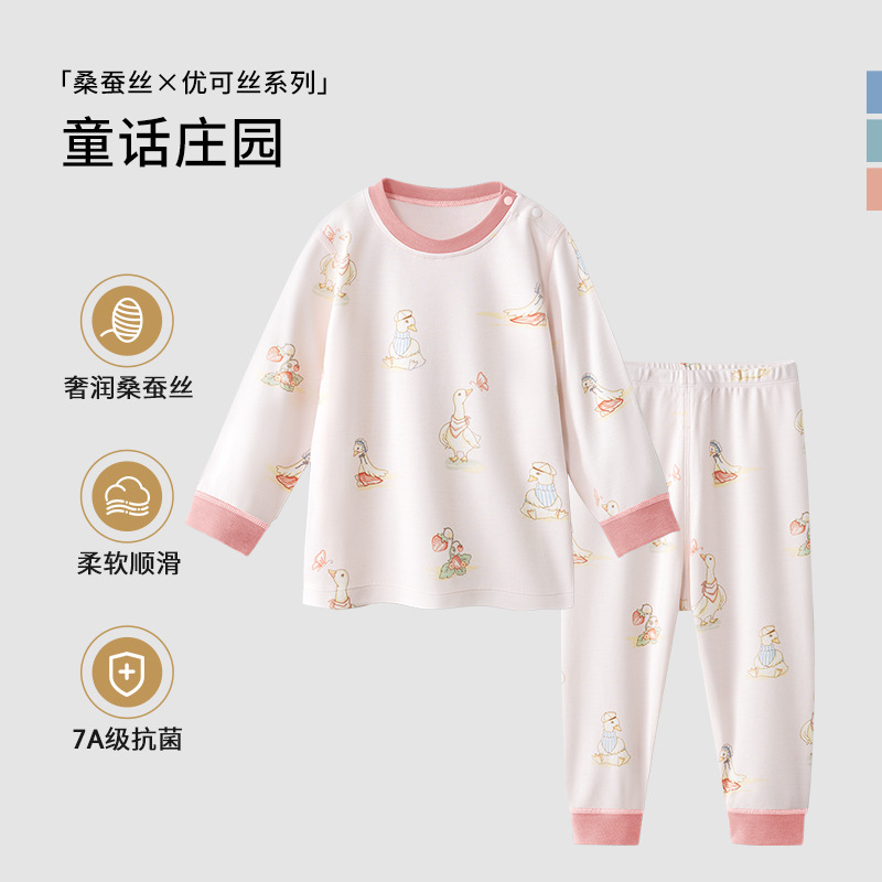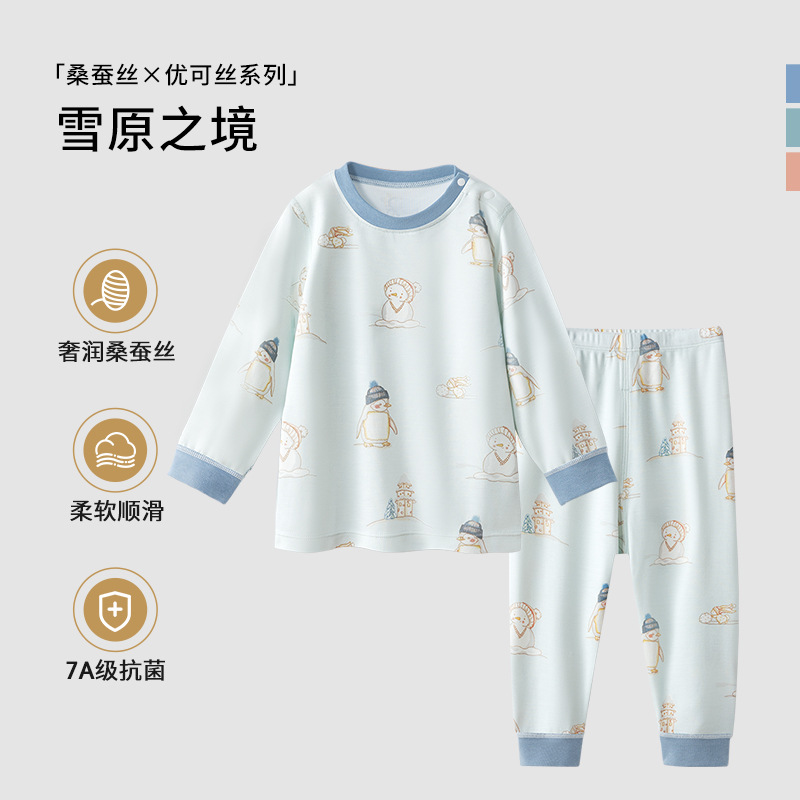 아기 가을 옷 세트 뽕나무 실크 어린이 가을 옷 가을 바지 소년 소녀 아기 열 속옷 가을과 겨울