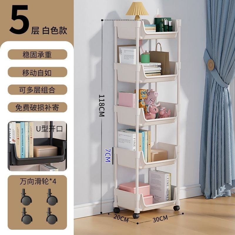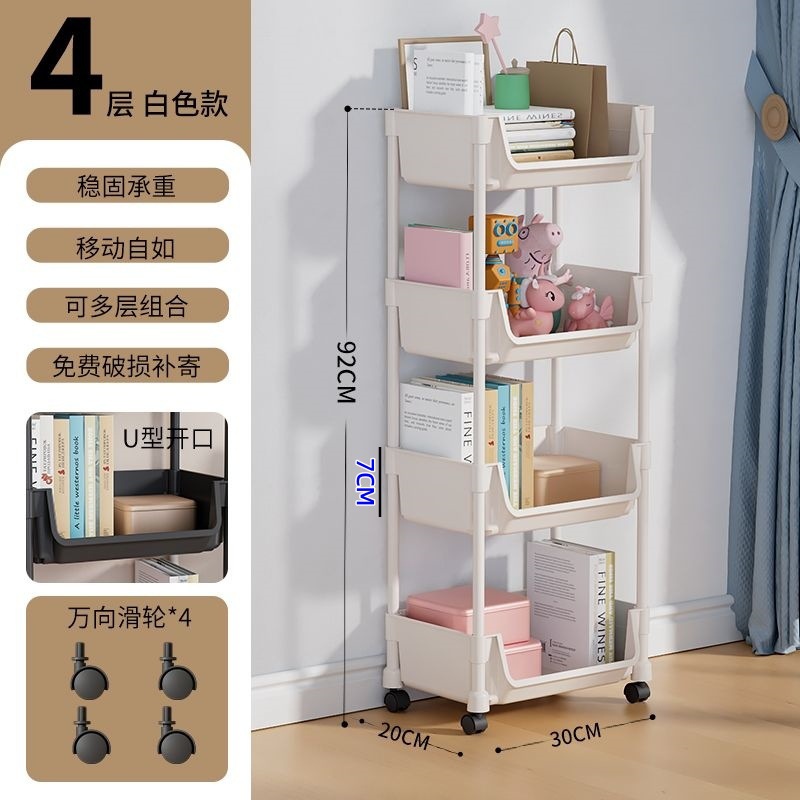 엄선된 이동식 책장, 거실용 다기능 장난감 및 간식 보관함, 다층 바퀴 달린 소형 카트 수납장스토어 가기