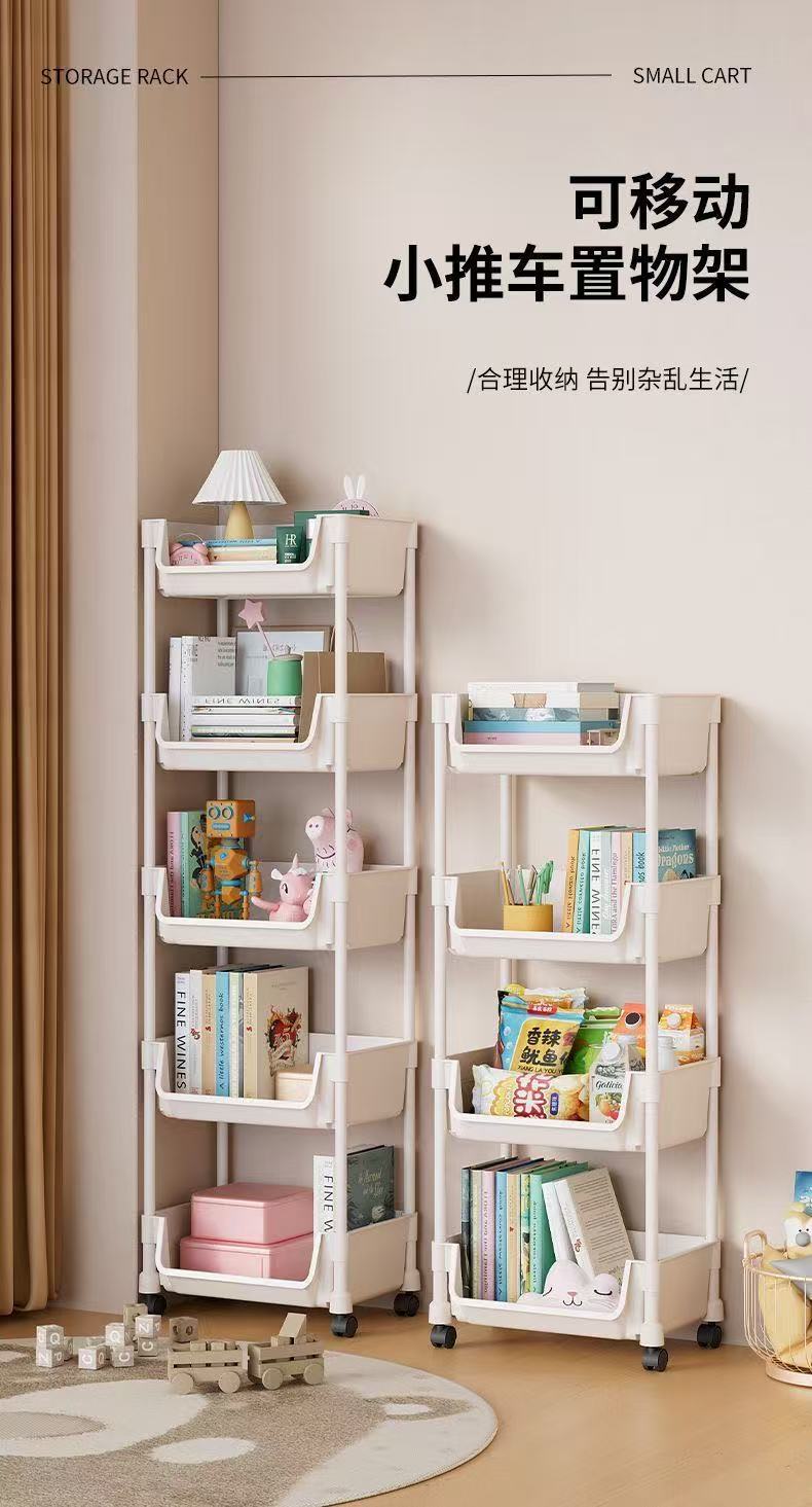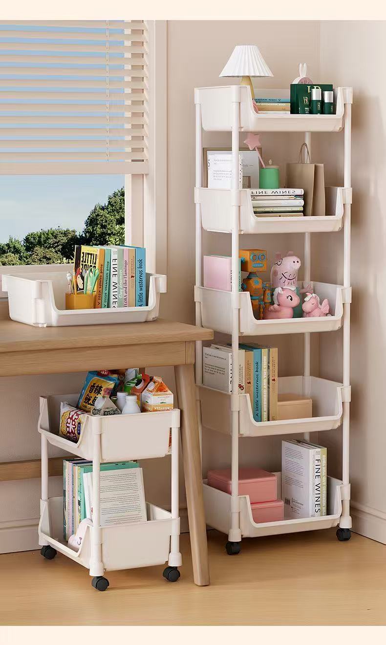 엄선된 이동식 책장, 거실용 다기능 장난감 및 간식 보관함, 다층 바퀴 달린 소형 카트 수납장