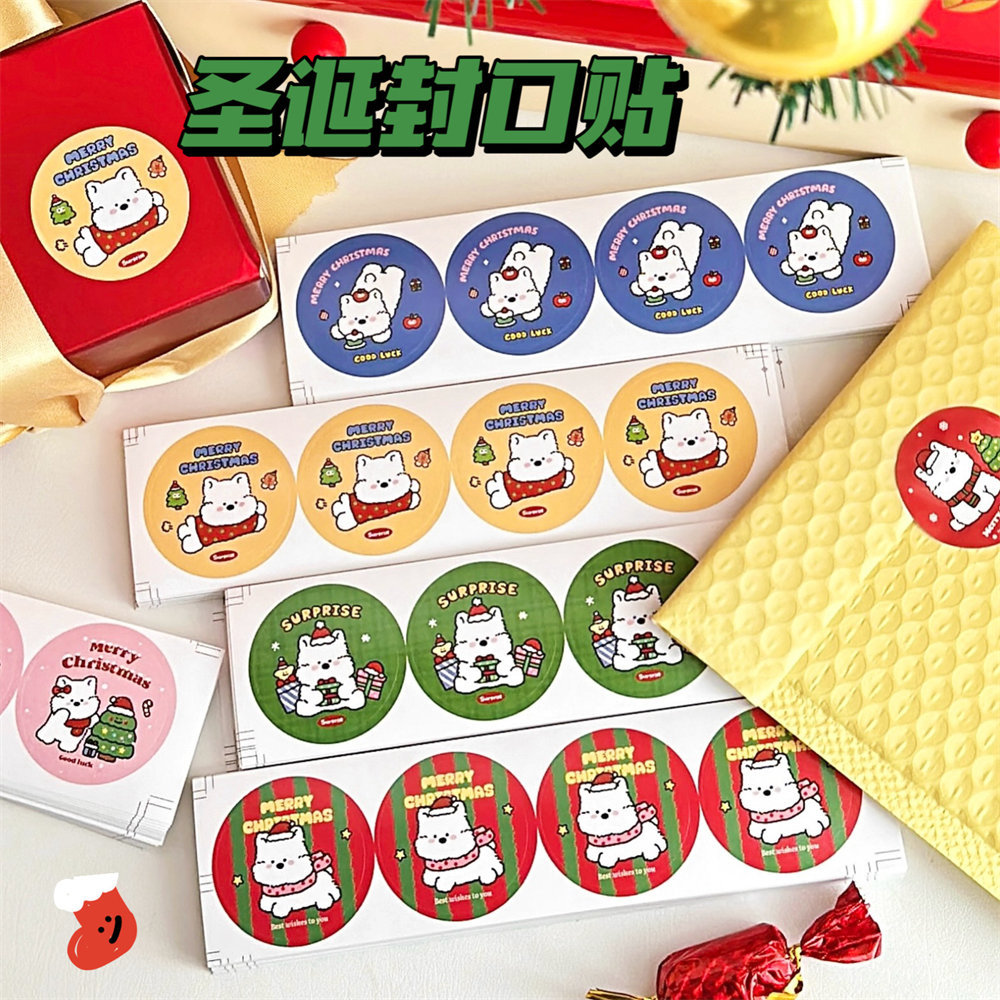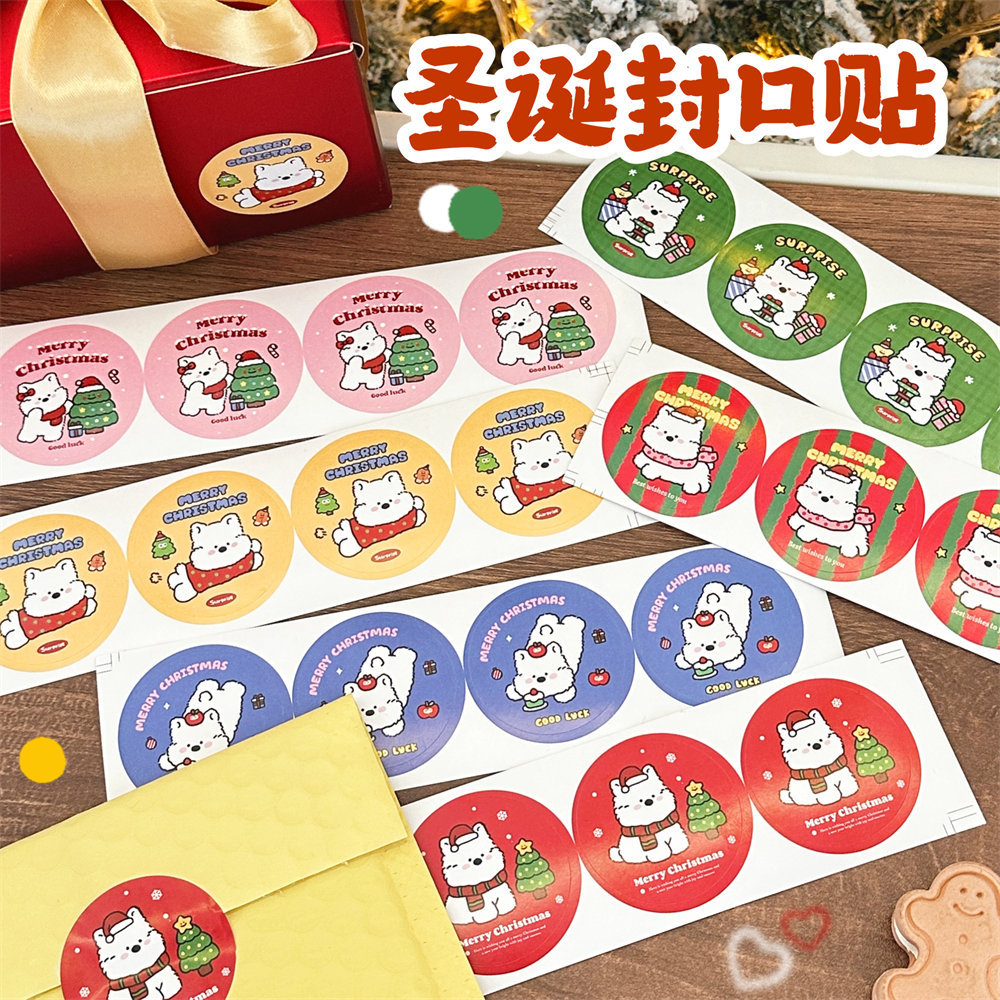 Tengyi 원래 귀여운 크리스마스 씰 스티커 선물 포장 장식 스티커 라운드 카토 스티커 포장 봉투 스티커