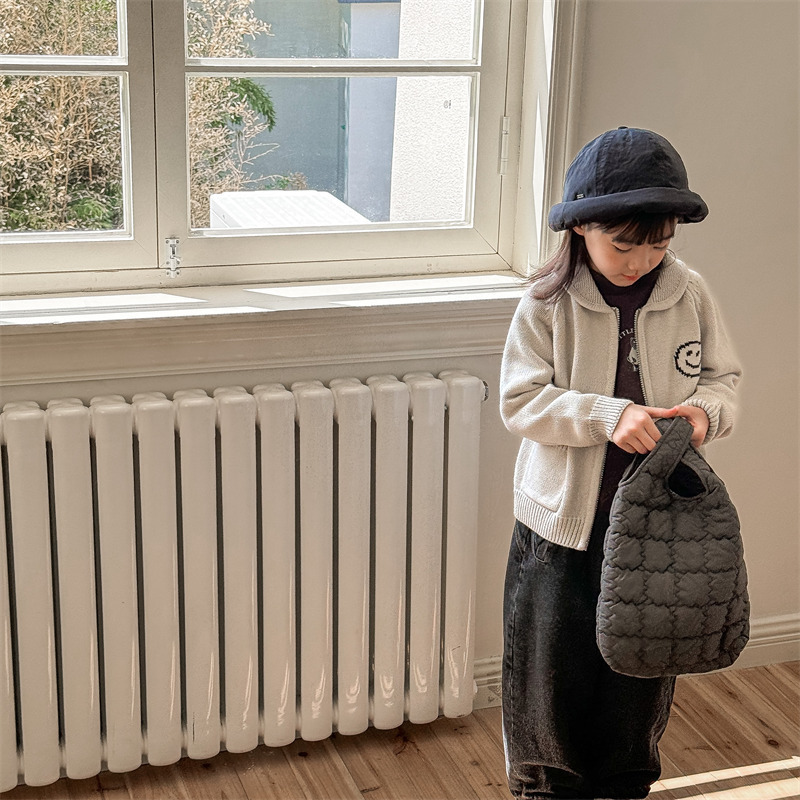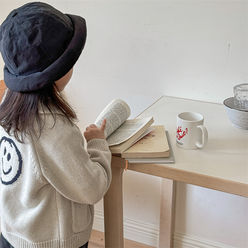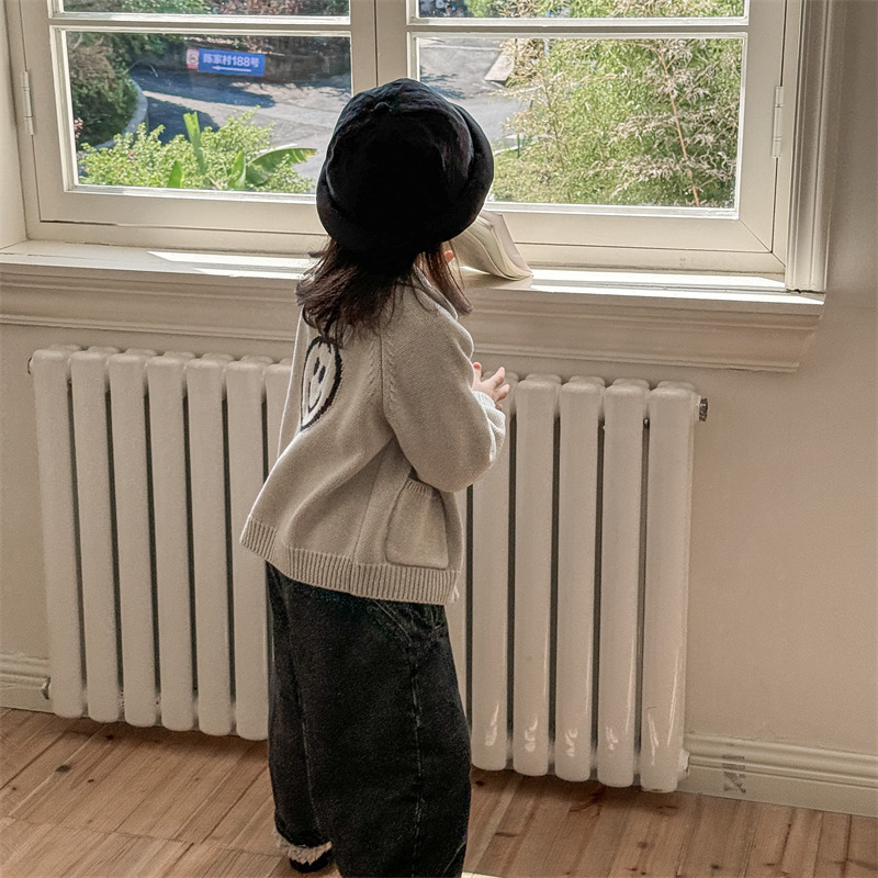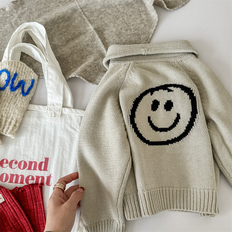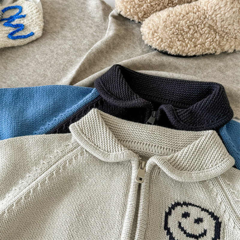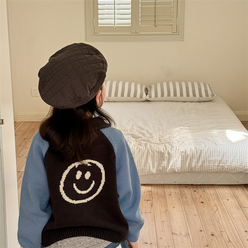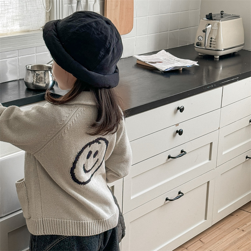 가을 2024 어린이 스웨터 카디건 소녀 한국 스마일리 페이스 컬러 블록 옷깃 지퍼 니트 카디건 스웨터 코트스토어 가기