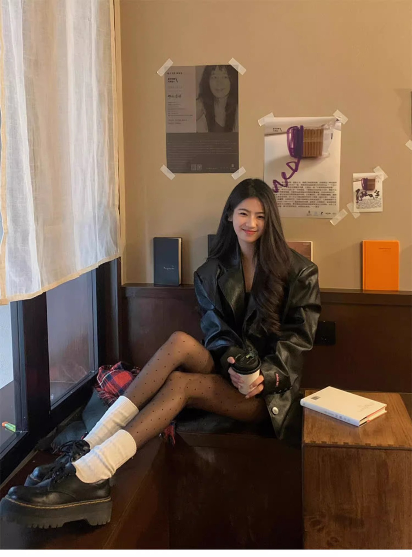 가벼운 다리 아티팩트 여성 웨이브 포인트 블랙 스킨-투명 레깅스 가을과 겨울 통합 단층 외부 착용 따뜻한 가랑이 팬티 스타킹