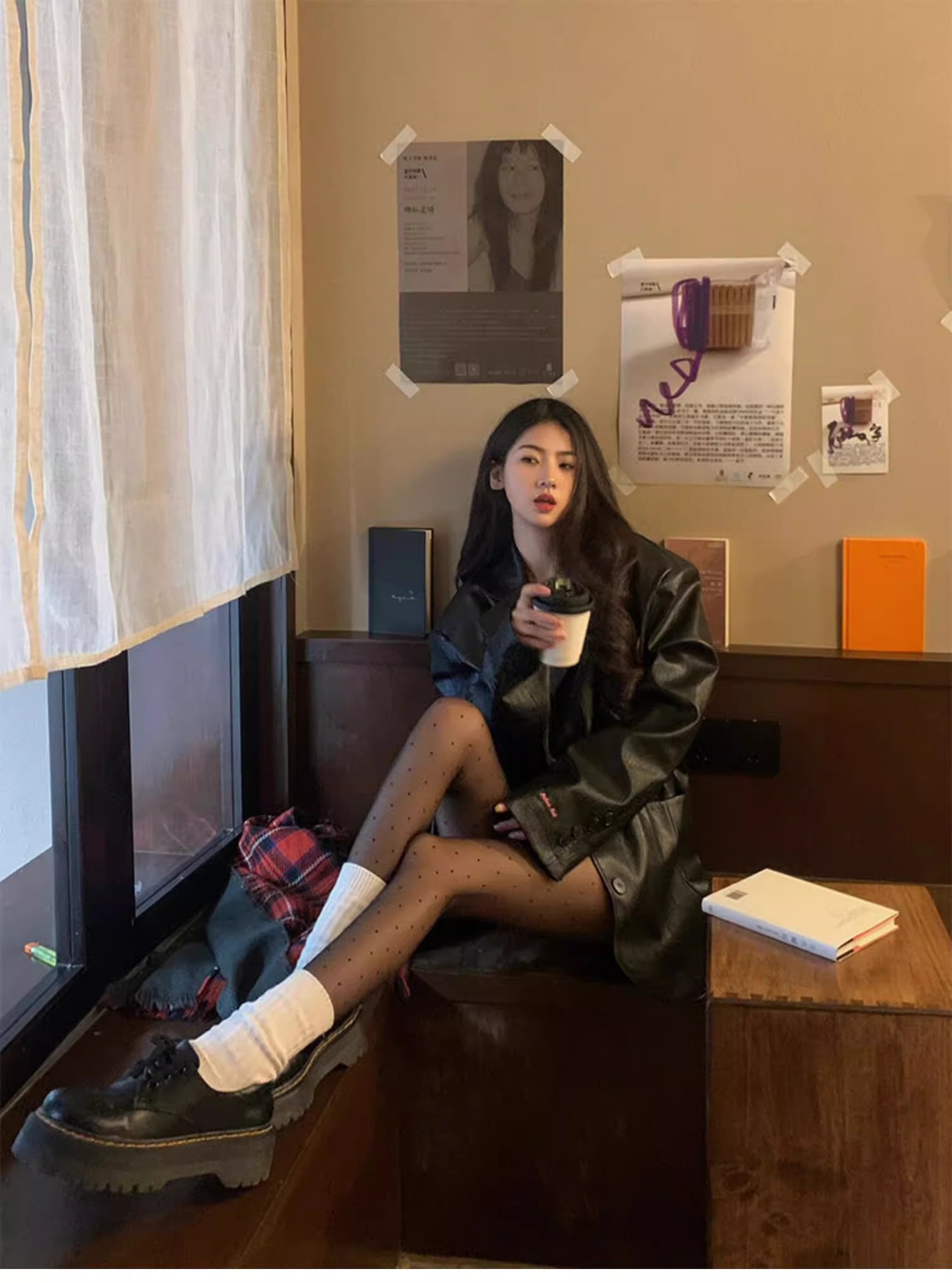 가벼운 다리 아티팩트 여성 웨이브 포인트 블랙 스킨-투명 레깅스 가을과 겨울 통합 단층 외부 착용 따뜻한 가랑이 팬티 스타킹스토어 가기