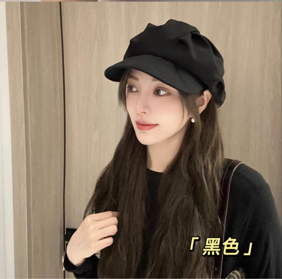 구름 모양 팔각모 여성용 큰 머리둘레로 얼굴을 작아보이게 하는 심플하고 다재다능한 캐주얼 주름 베레모 레트로 스타일로 작아보이게 하는 모자스토어 가기