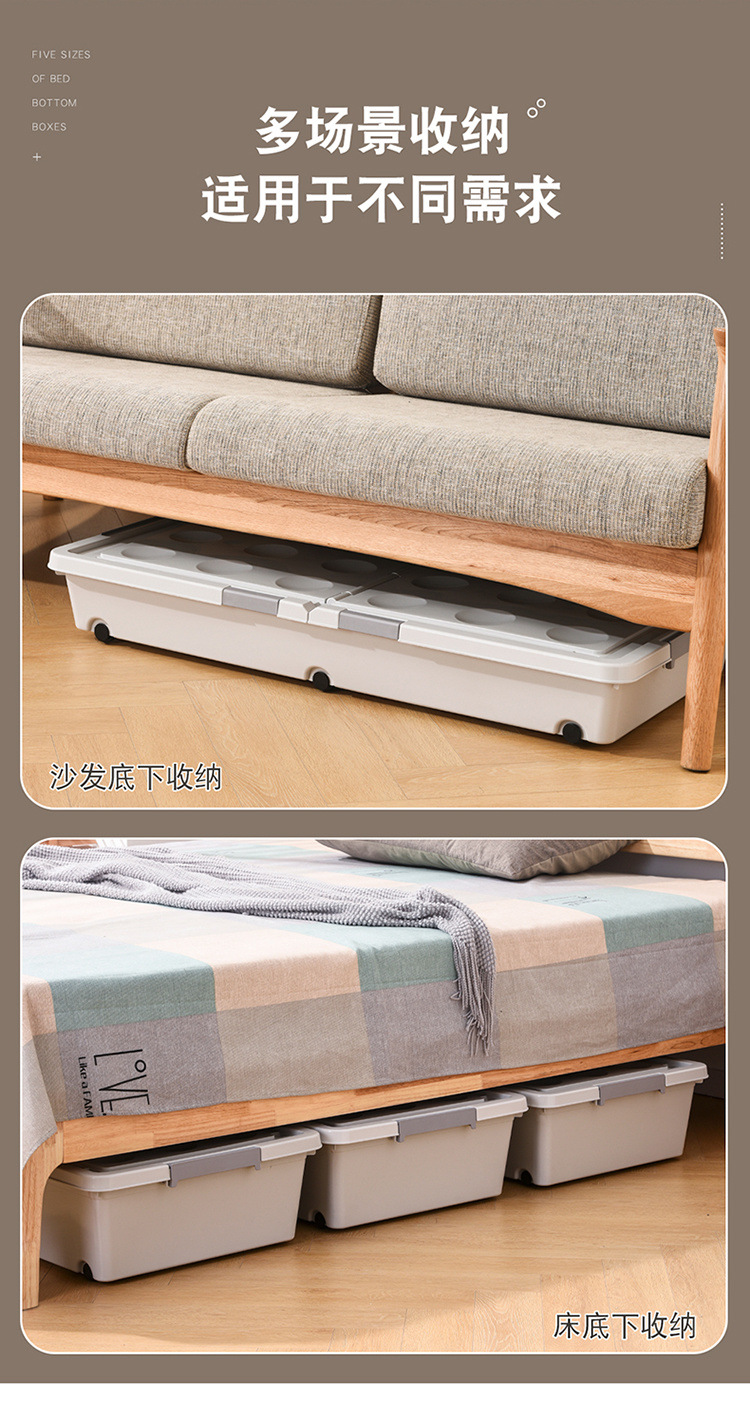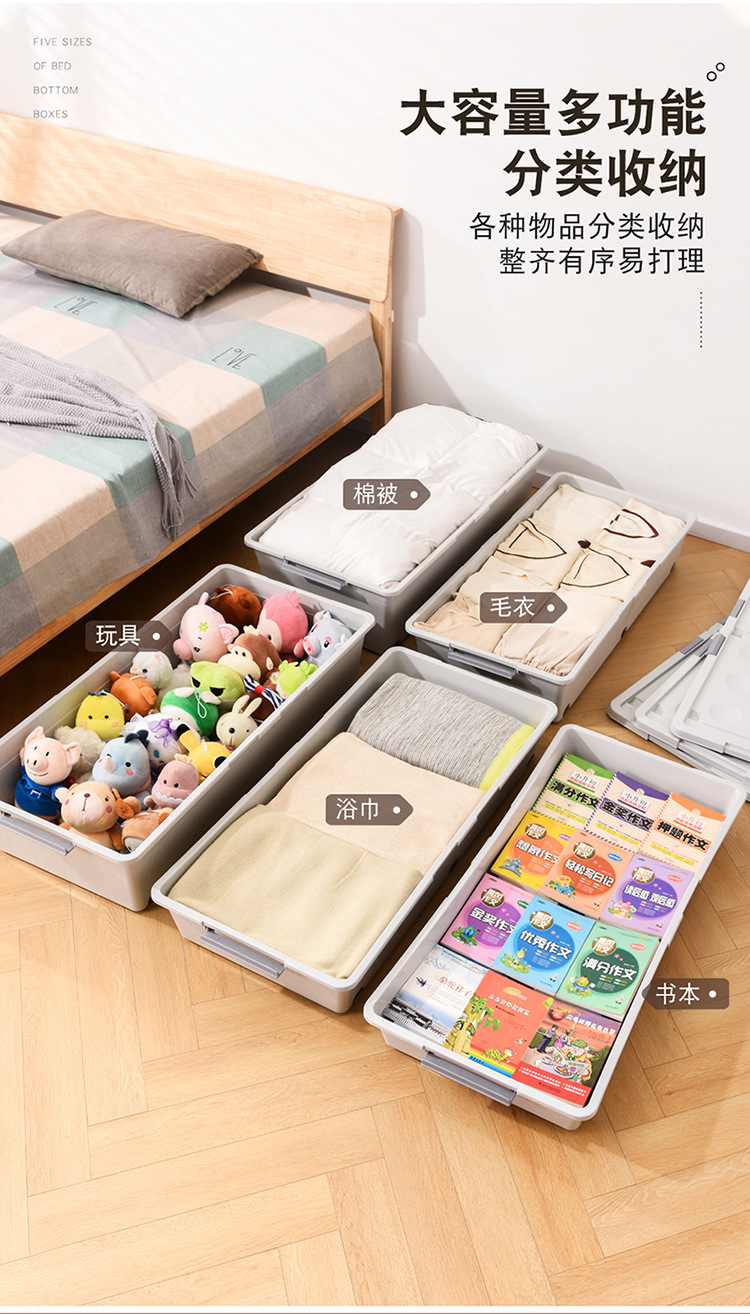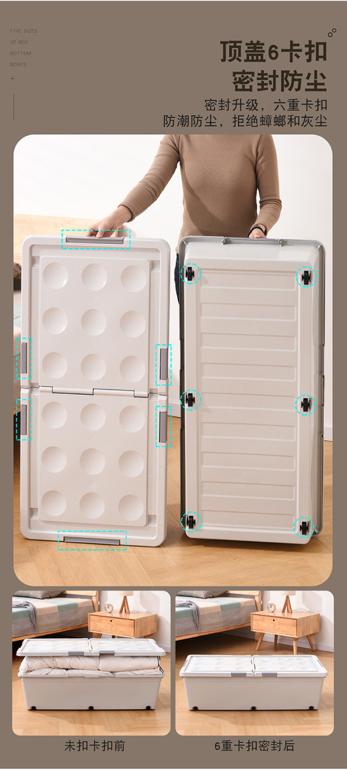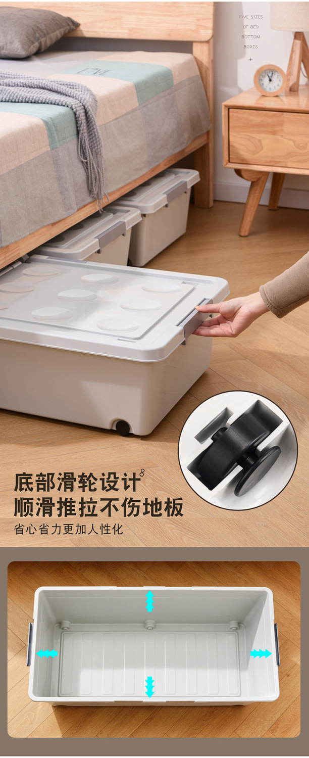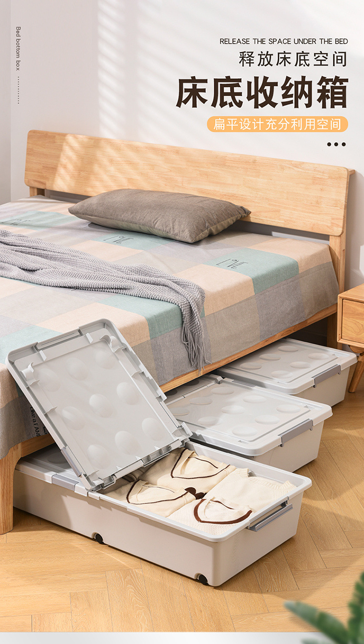 바퀴가 달린 침대 보관 상자 가정용 플랫 서랍 유형 옷 침대 보관 상자 아래 습기 방지 보관 마감 상자