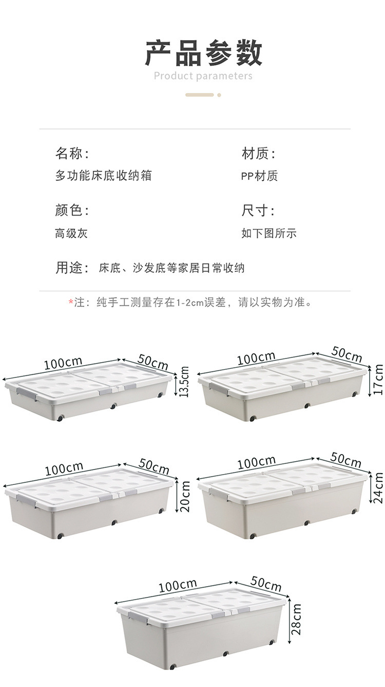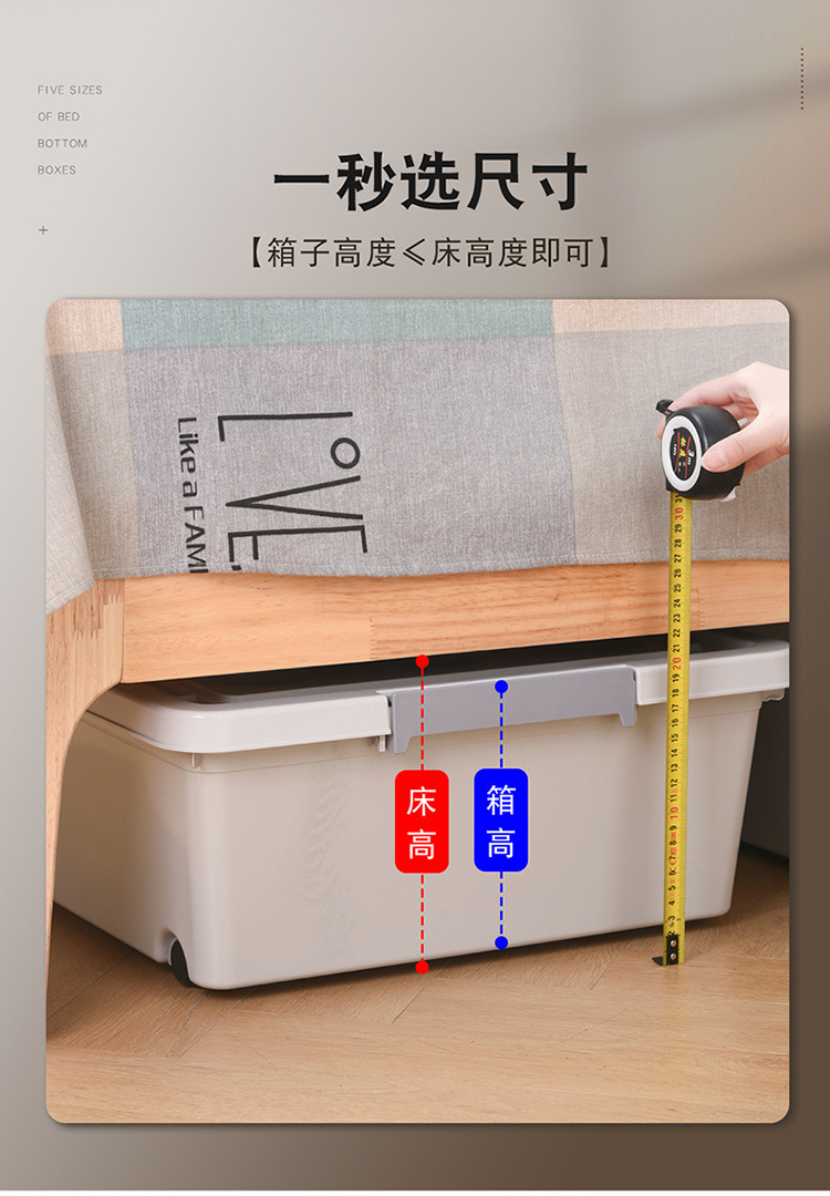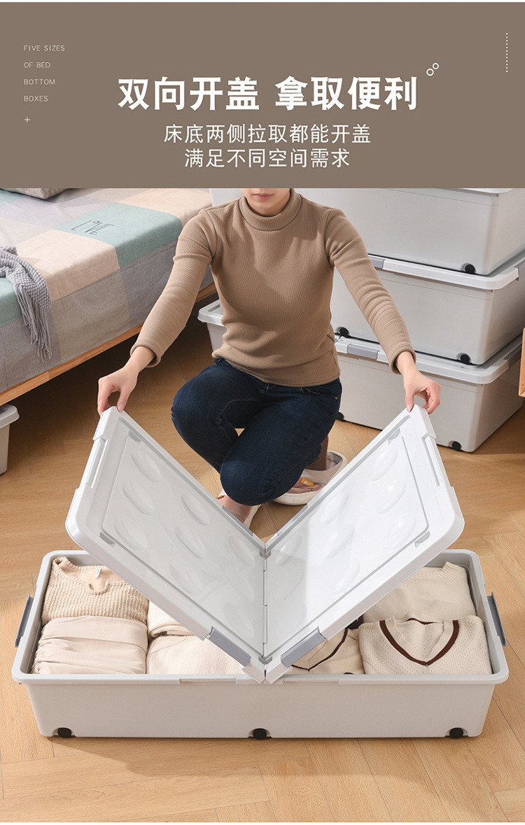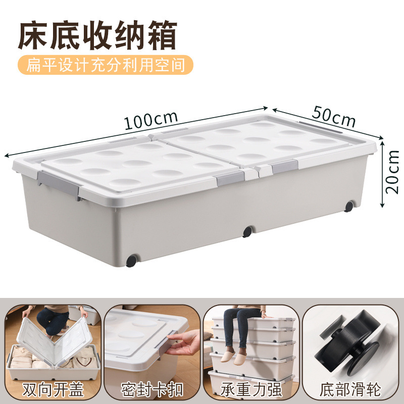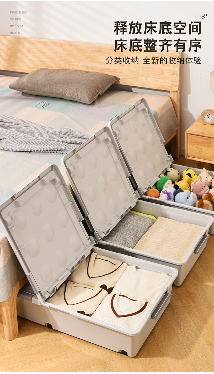 바퀴가 달린 침대 보관 상자 가정용 플랫 서랍 유형 옷 침대 보관 상자 아래 습기 방지 보관 마감 상자
