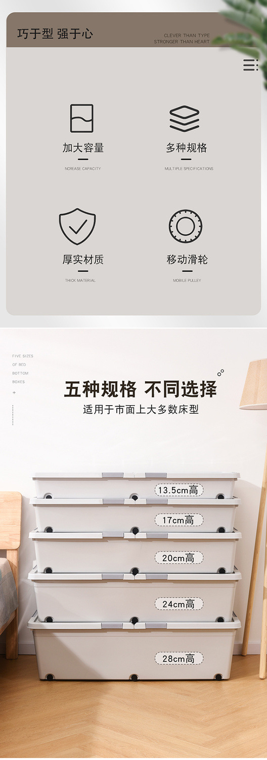 바퀴가 달린 침대 보관 상자 가정용 플랫 서랍 유형 옷 침대 보관 상자 아래 습기 방지 보관 마감 상자스토어 가기