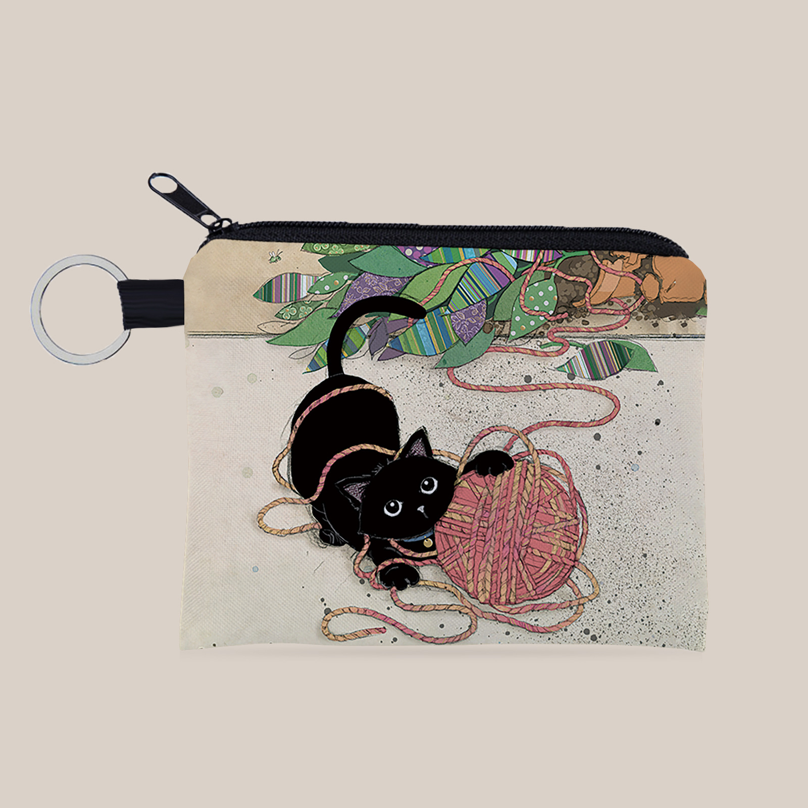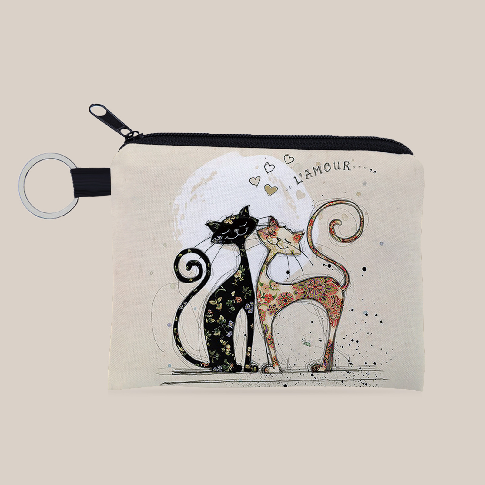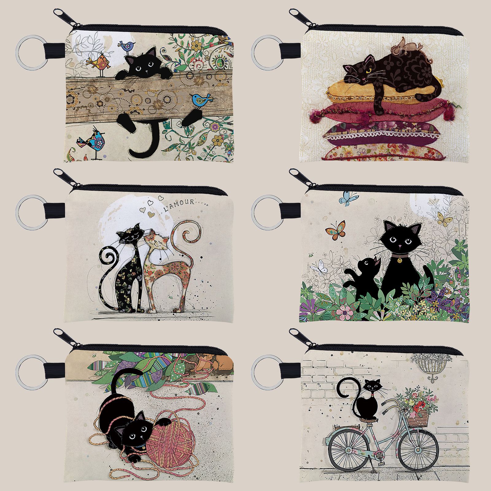 크로스 국경 뜨거운 판매 귀여운 고양이 인쇄 패턴 동전 지갑 휴대용 키 체인 동전 가방 소녀 여성 선물