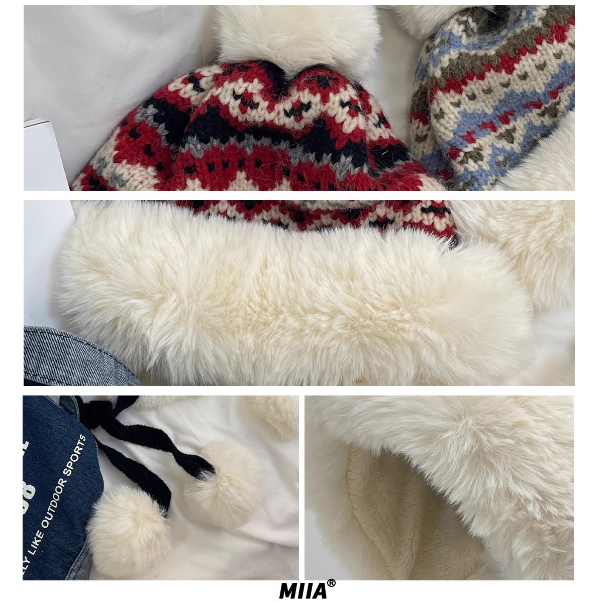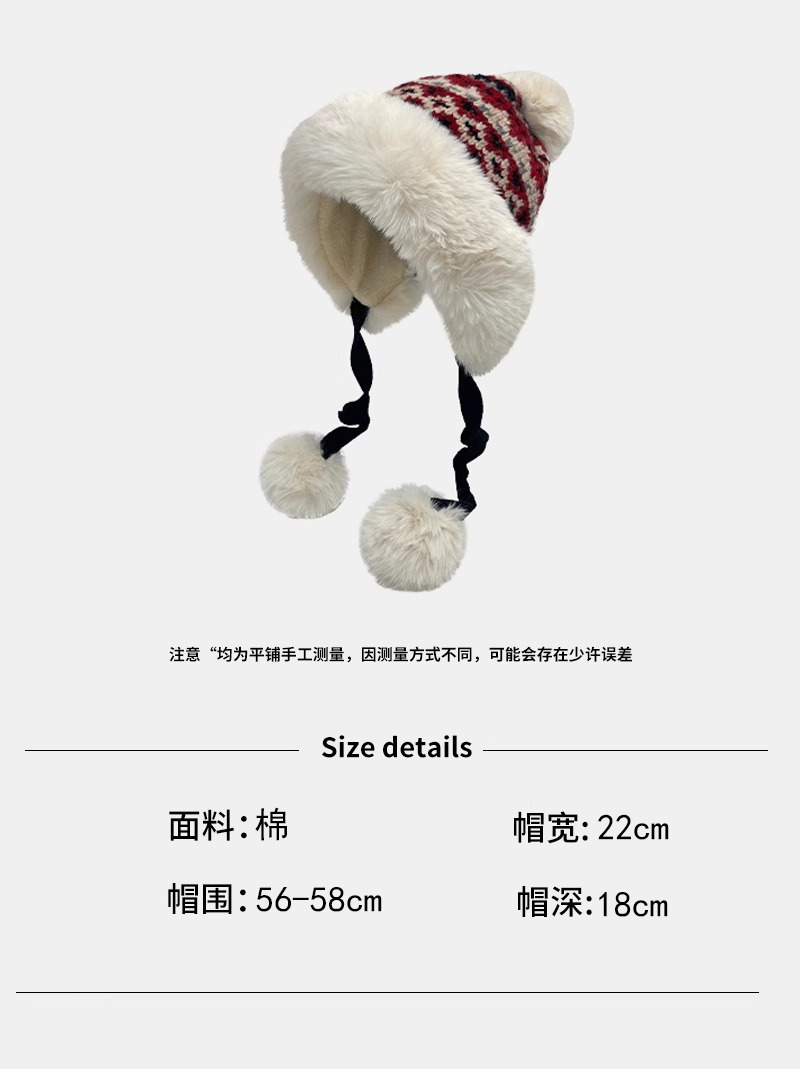 새로운 스타일 헤어 볼 따뜻한 큰 머리 얼굴 작은 모든 일치 양모 모자 귀 보호 기모 두꺼운 자카드 니트 레이 펑 모자