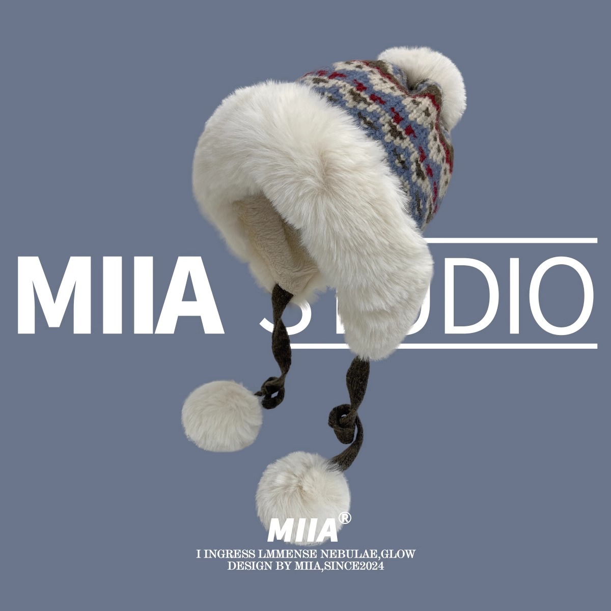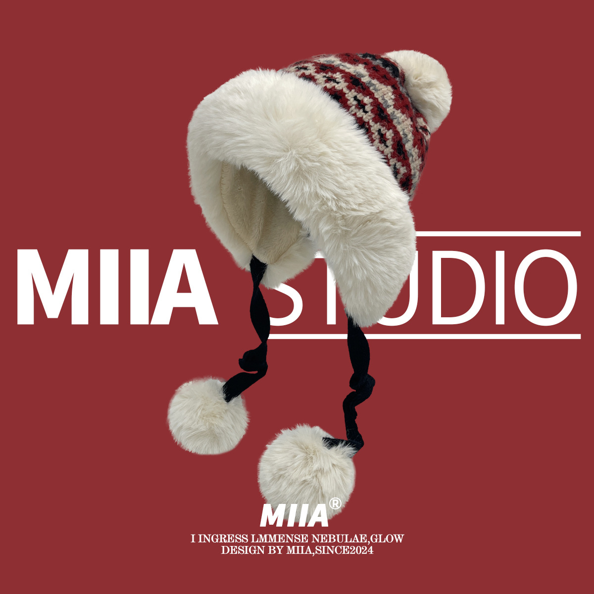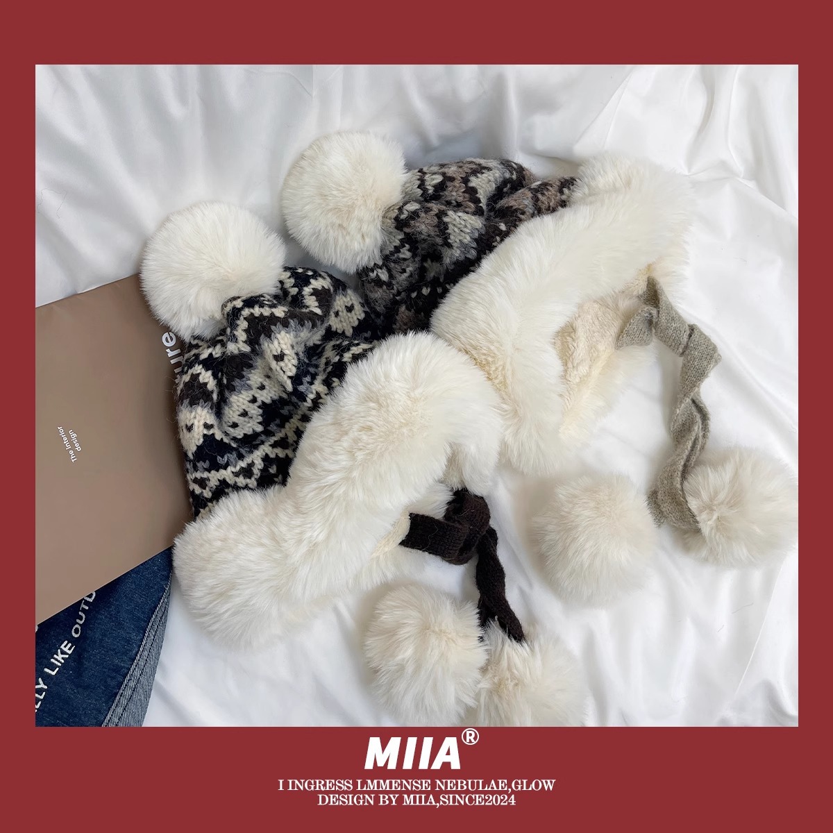 새로운 스타일 헤어 볼 따뜻한 큰 머리 얼굴 작은 모든 일치 양모 모자 귀 보호 기모 두꺼운 자카드 니트 레이 펑 모자스토어 가기