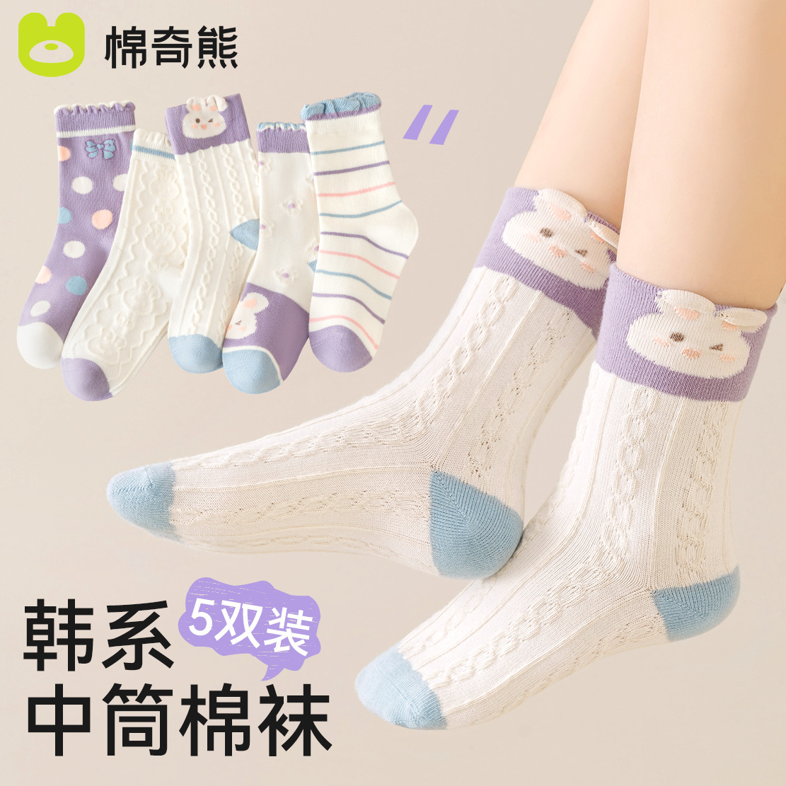 소녀 양말 가을과 겨울 어린이 클래스 A 면 중간 튜브 양말 소녀 아기 봄과 가을 긴 튜브 면 양말 큰 어린이 뼈없는 양말스토어 가기