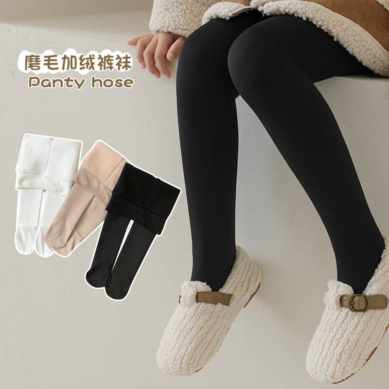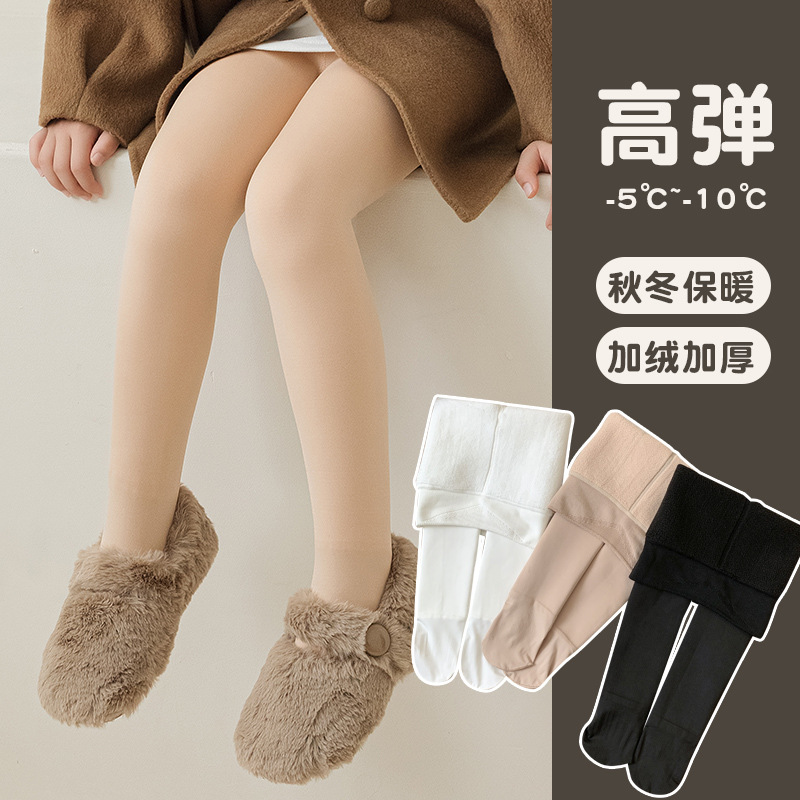 가을과 겨울 솔리드 컬러 기모 두꺼운 소녀 레깅스 어린이 라이트 레그 아티팩트 댄스 양말 팬티 스타킹 워터 라이트 팬츠스토어 가기