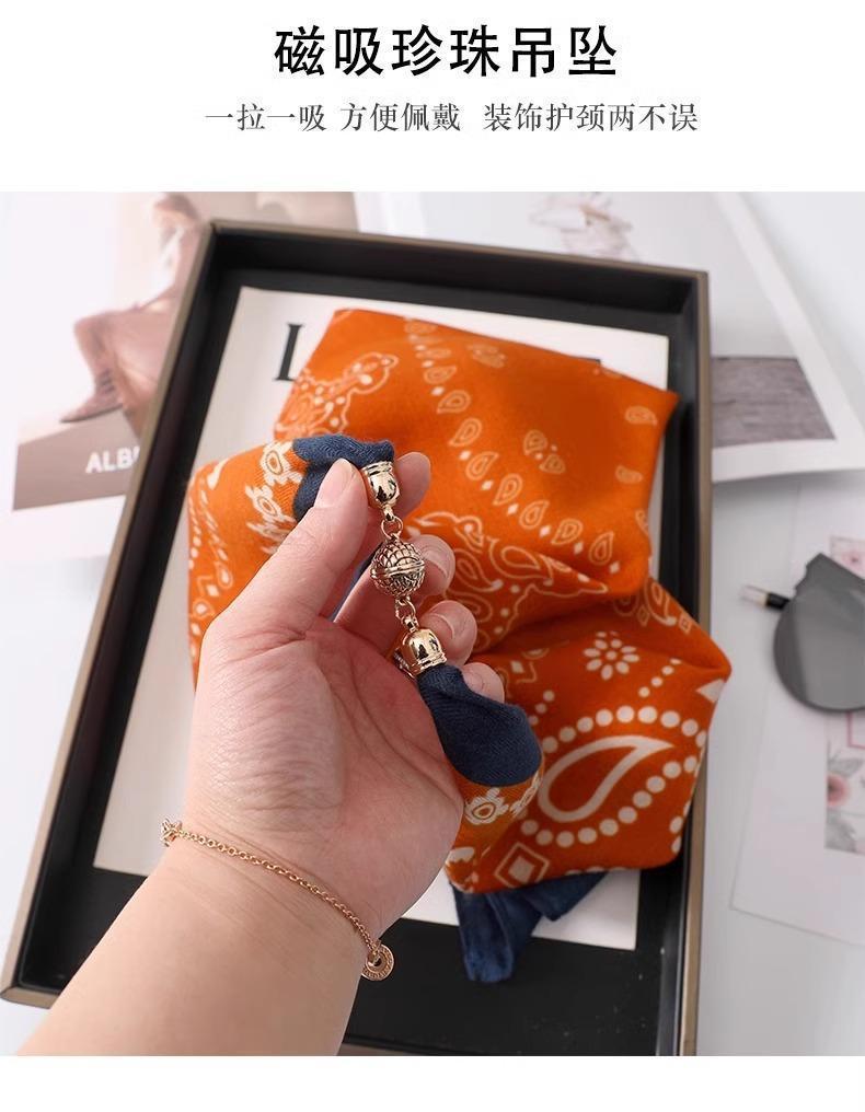 新款磁吸扣丝巾秋冬女士小方巾保暖防寒韩版围巾围脖装饰时尚百搭