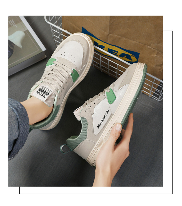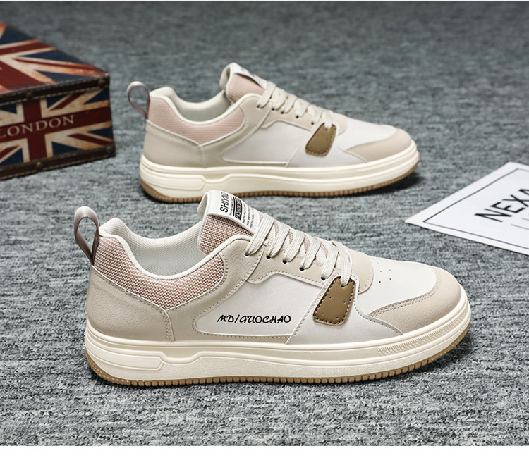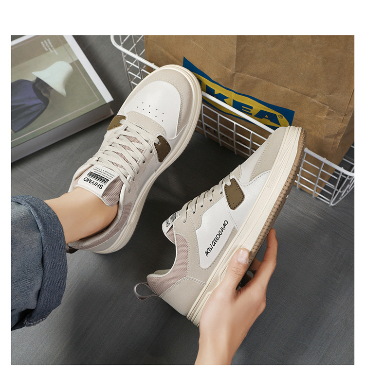 가을 새로운 유행 학생 신발 한국 스타일 로우 탑 레이스 업 야외 운동화 가죽 캐주얼 화이트 신발스토어 가기
