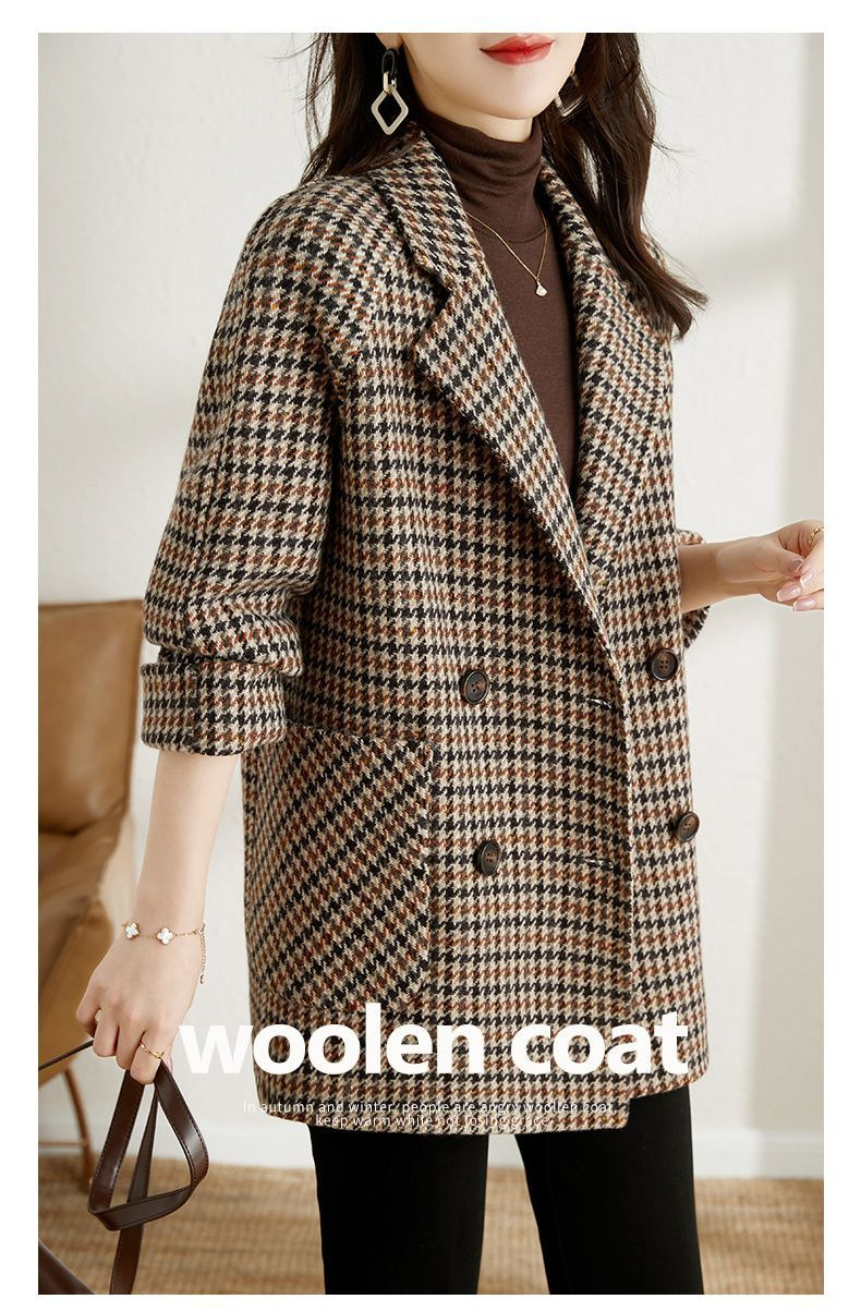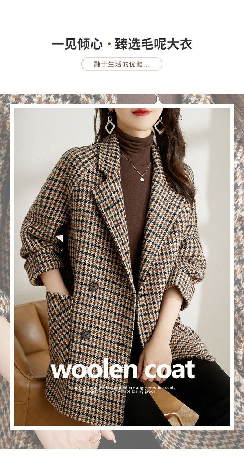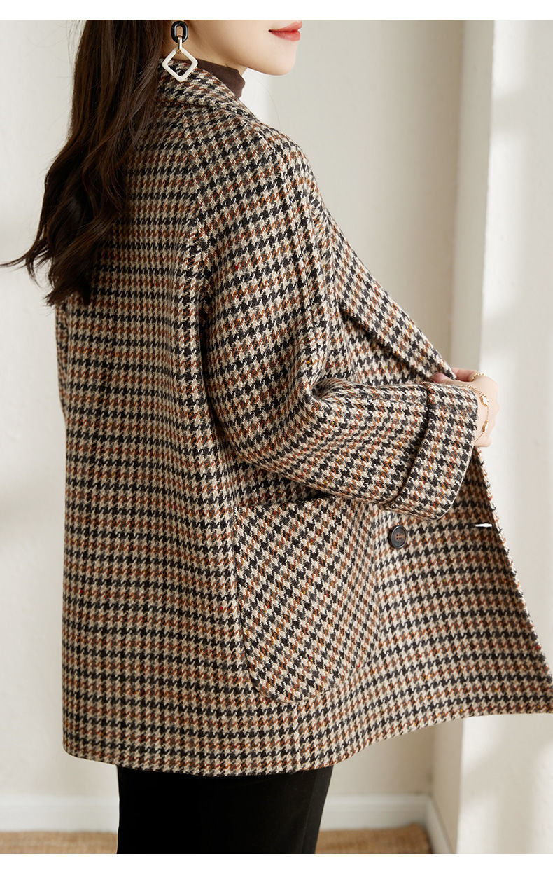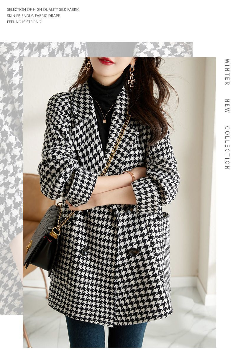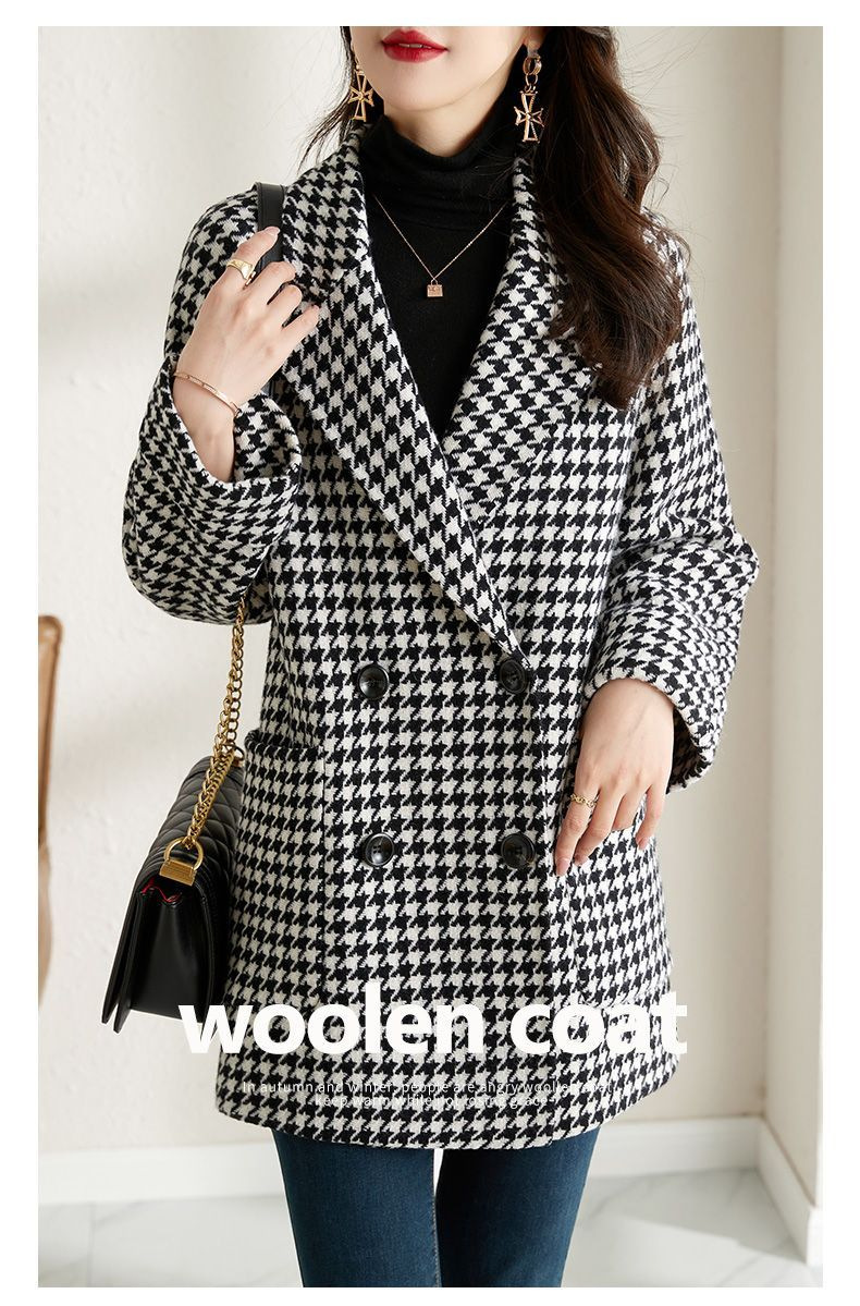 가을과 겨울 새 원피스 칼라 하운드 투스 모직 코트 느슨한 여성 의류 유행 모직 중장 코트스토어 가기