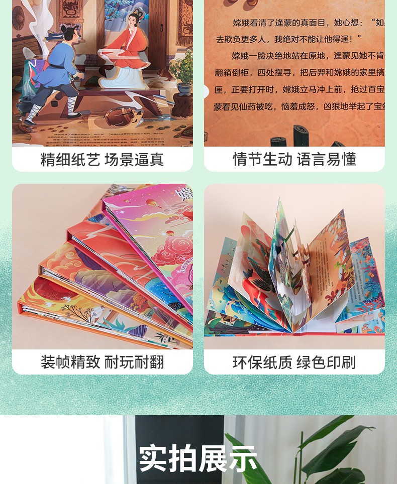 하늘을 고치는 누와 3D 입체 극장서 중국 신화 이야기 플립 북 허우가 태양을 쏘고 천궁에서 8 명의 불멸을 고치는 것스토어 가기