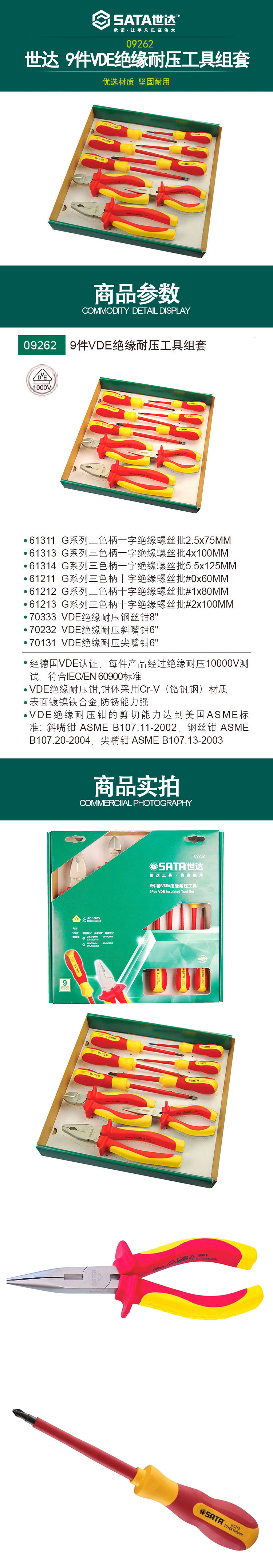 Shida 하드웨어 도구 9 조각 VDE 절연 압력 도구 세트 09262