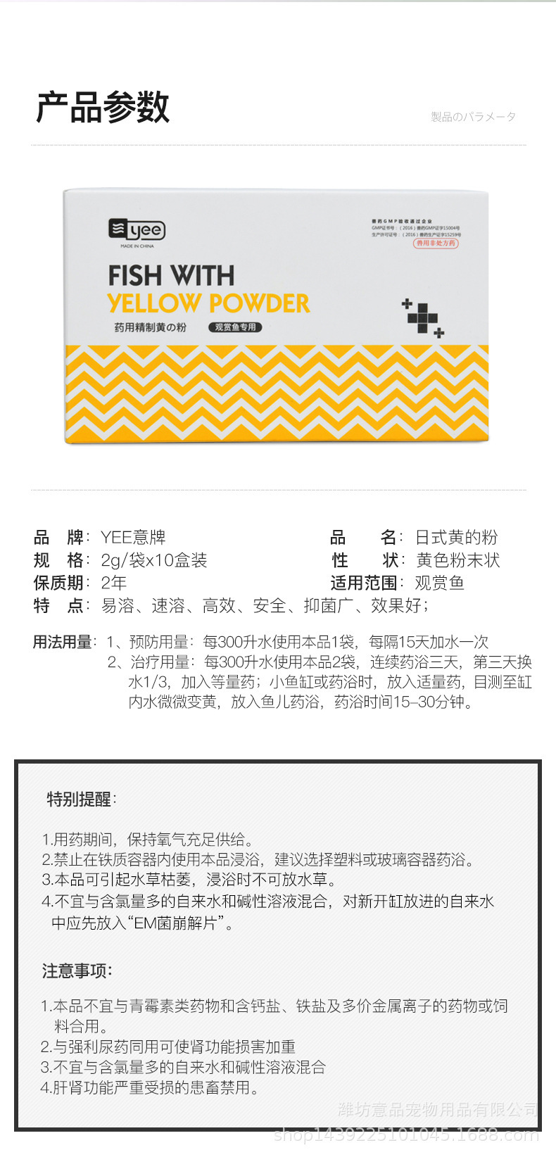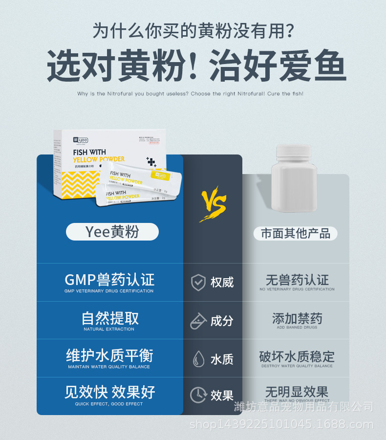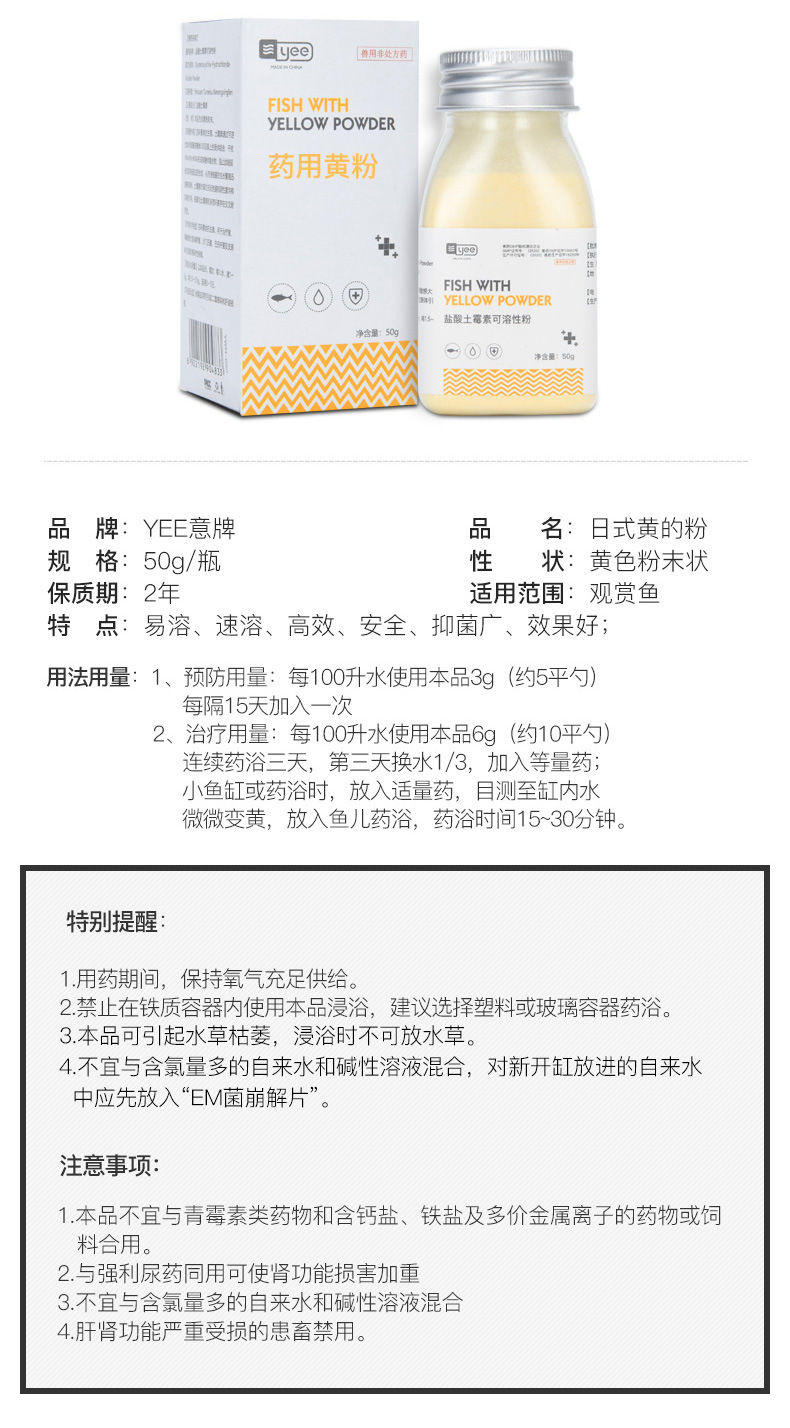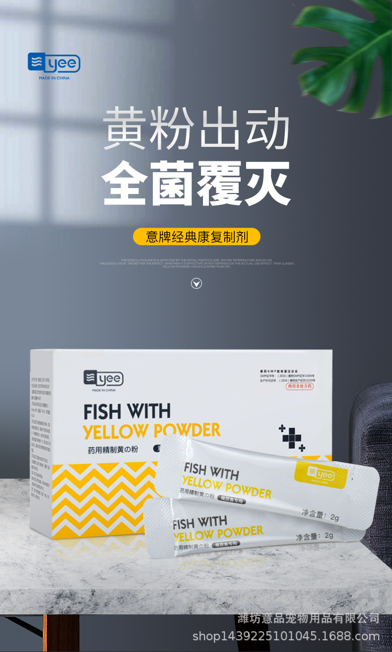 Yee 노란색 분말 금붕어 탱크 살균 잉어 열대 관상용 어병 흰색 점 노란색 분말 생선 소독 분말 도매스토어 가기