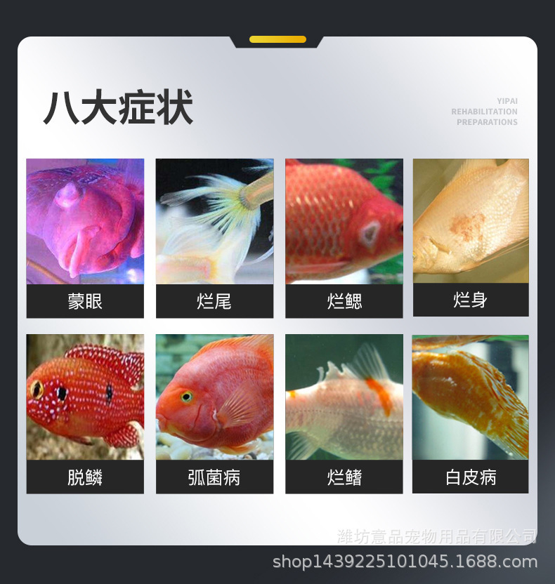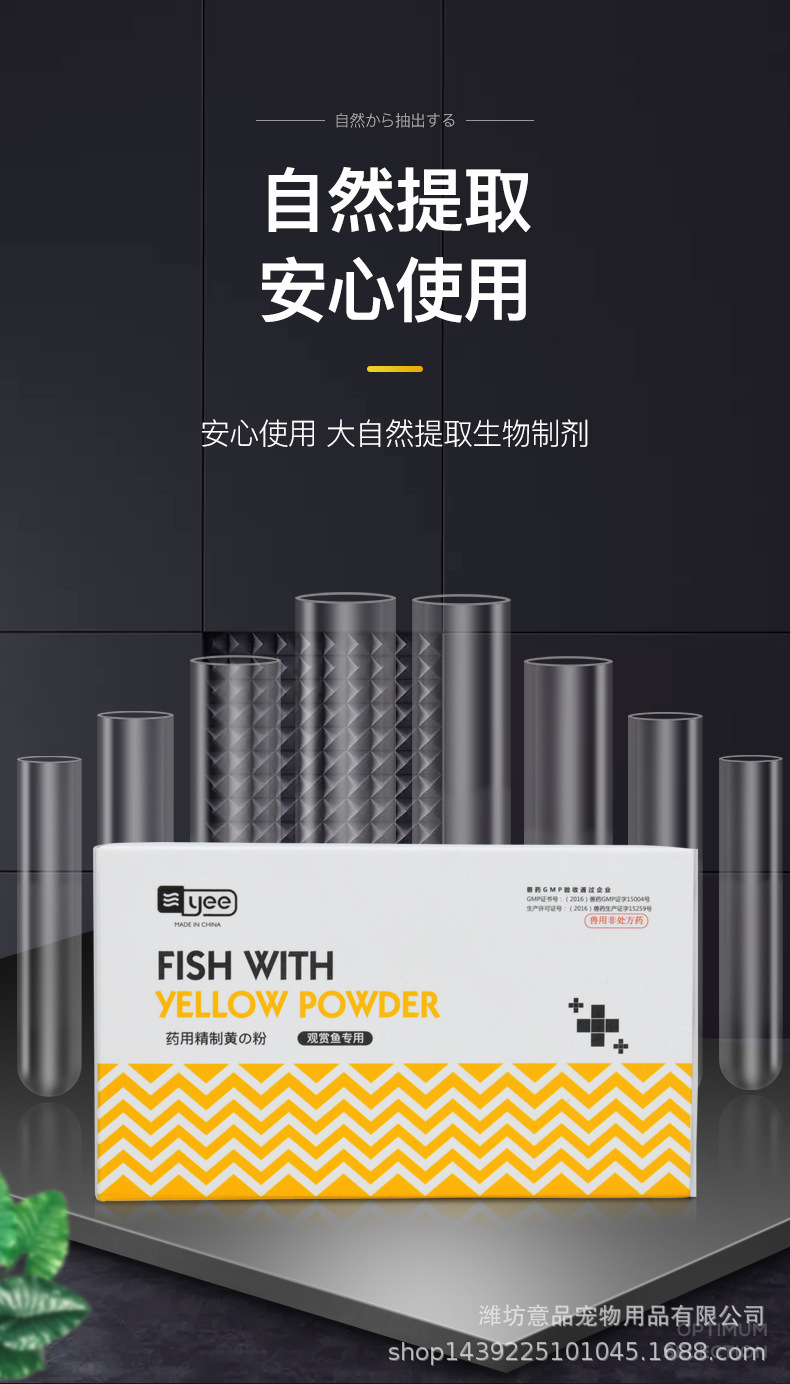 Yee 노란색 분말 금붕어 탱크 살균 잉어 열대 관상용 어병 흰색 점 노란색 분말 생선 소독 분말 도매