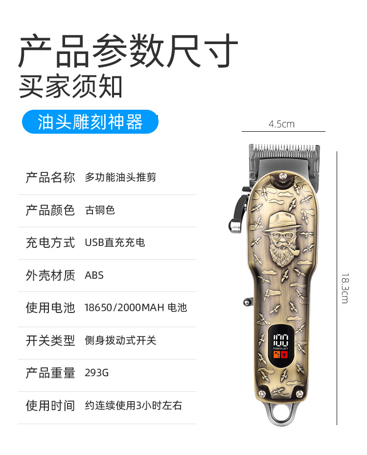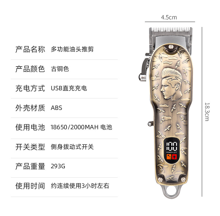전문 전기 헤어 클리퍼 도매 충전 헤어 클리퍼 헤어 살롱 특수 전기 클리퍼 조각 오일 헤드 전기 클리퍼스토어 가기