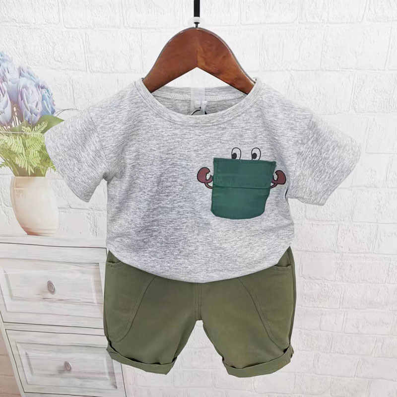 • F00112 회색 티셔츠 + 00036 녹색 반바지