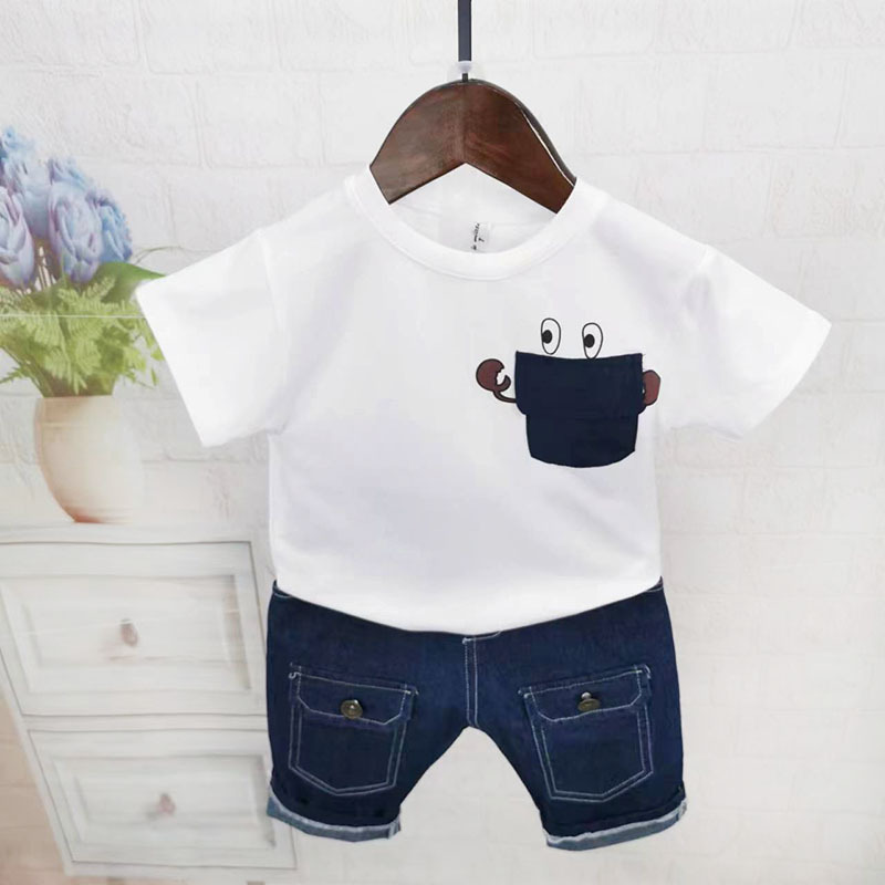 소년 소녀 반팔 티셔츠 세트 코튼 새 어린이 여름 반팔 티셔츠 캐주얼 반바지 투피스 세트 쿨스토어 가기